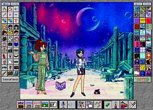 * Всего три фона (Полная версия сожержит 9 фонов, но её надо покупать)* Вы можете помещать только пять персонажей на картинку!