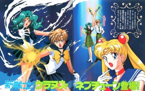 На страницах Сейлор Уран и Нептун присутствует краткая вводная информация, четко характеризующая их как воинов, например: «Сейлор Уран, чей покровитель - планета Уран, называют воином неба. Она демонстрирует наступательную силу, превосходящую по выдающейся скорости и энергии всех воинов, известных до настоящего момента». У Нептун: «Планета-хранитель Воина глубокого моря Сейлор Нептун - Нептун. Она всегда ведет сражение хладнокровно и эффективно. Ее конек - не полагаться на силу, а поражать слабые места противника». Кроме этого даны изображения жезлов, скриншоты некоторых поз перевоплощения, приводятся слова, которые говорит каждая девушка при перевоплощении, дается раскадровка атак (со словами), приведены эскизы героинь, использовавшихся при рисовании аниматорами, немного рассказывается о характере и об отношении воительниц к долгу (буквально в нескольких словах, но так как японская культура очень визуализированная, рядом помещенные картинки компенсируют скудность текста в избытком).