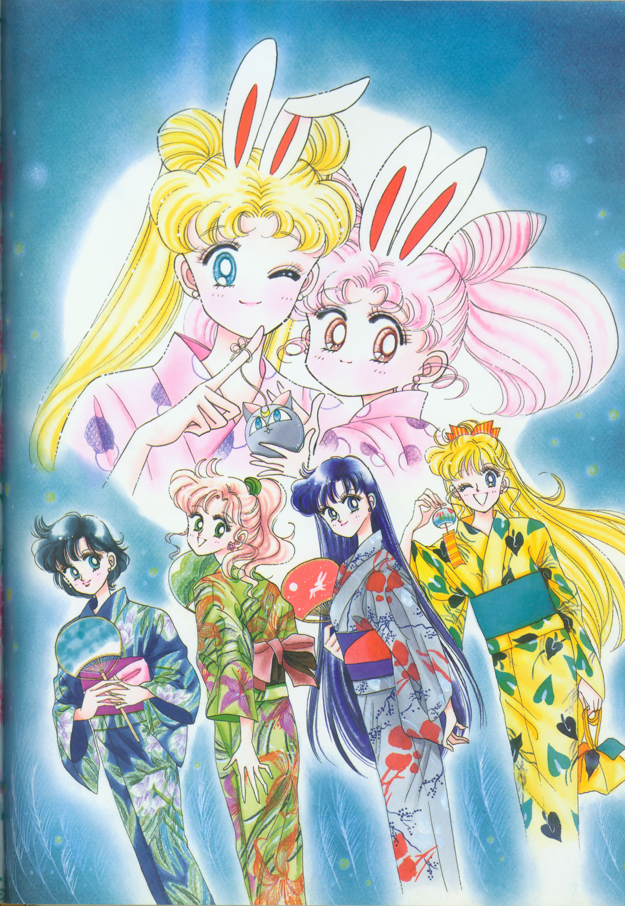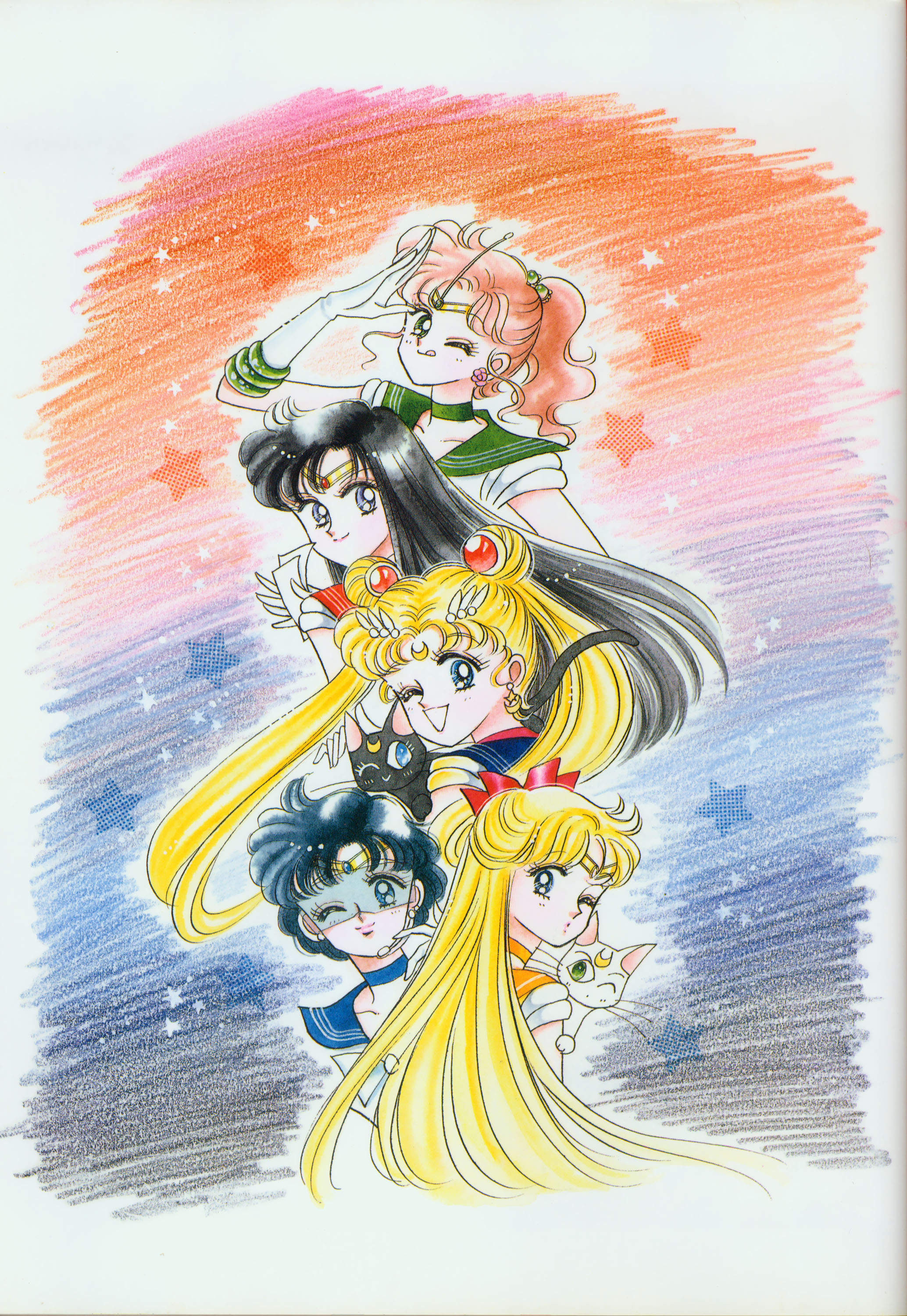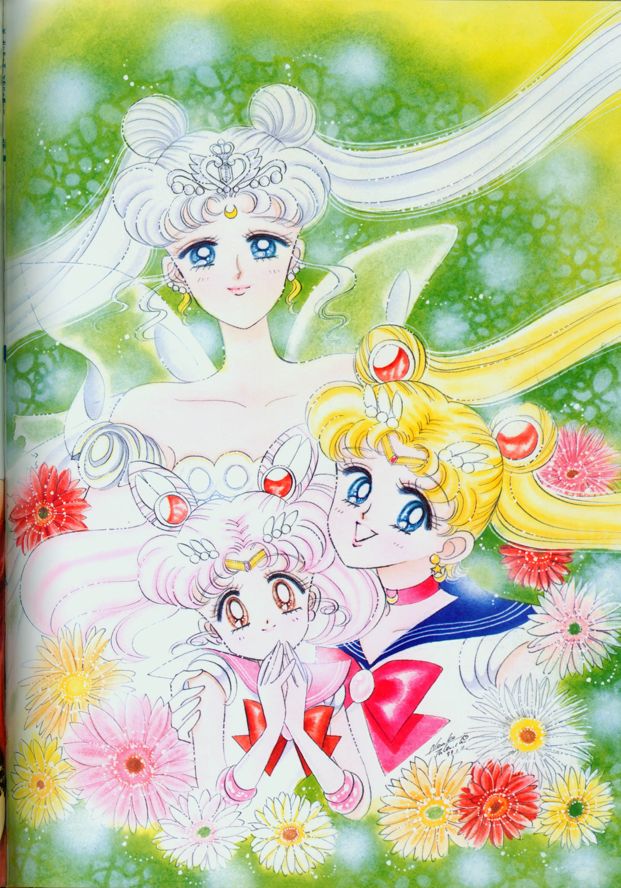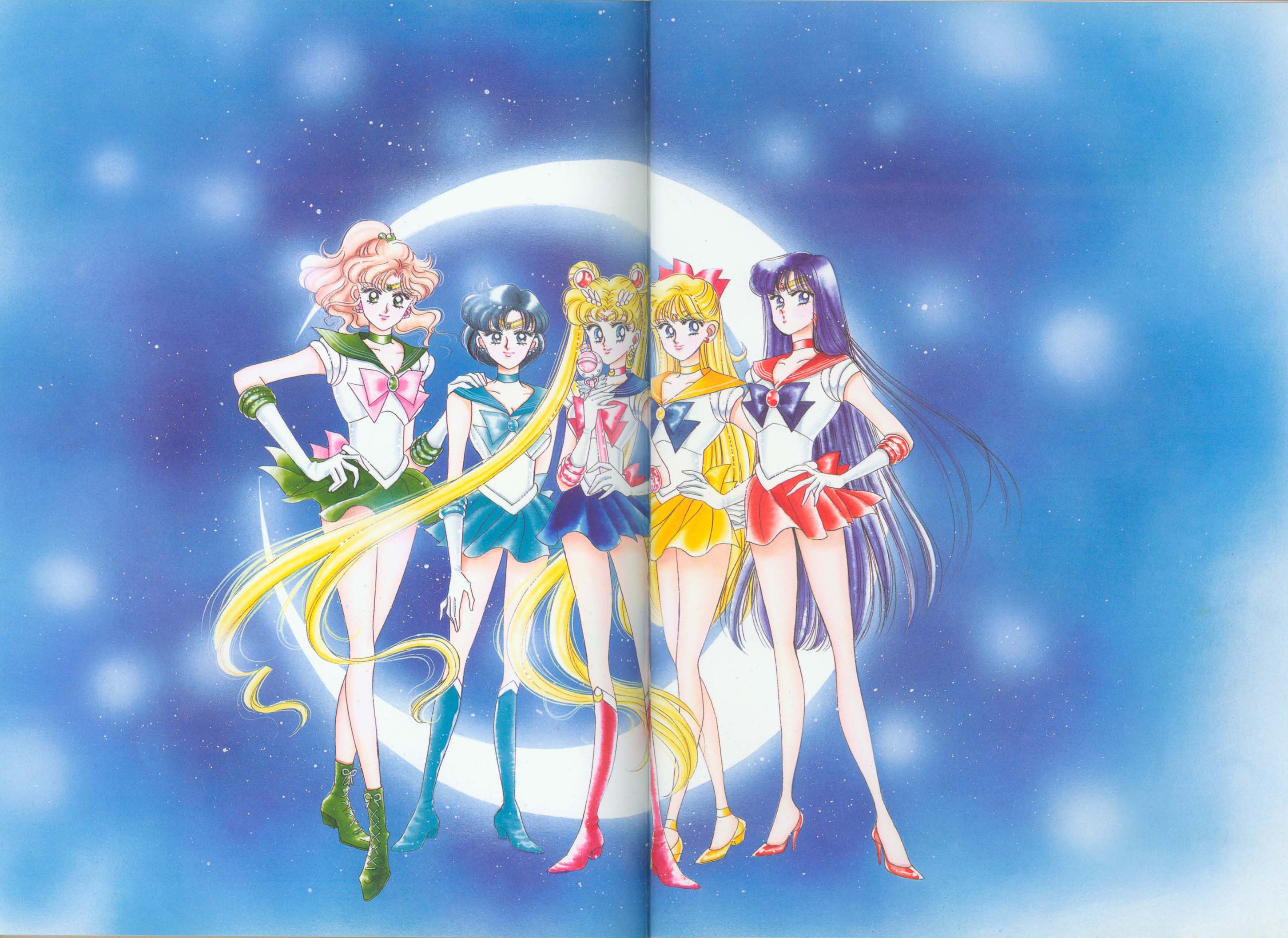 Когда я рисовала эту картинку, мне как раз приходилось производить множество цветных рисунков. У меня не было хороших идей и я была полностью истощена. "Почему я должна рисовать еще и приложения к журналу, хотя я уже рисую так много обложек?" Эта картинка появилась в Японии, как обожка маленького журнала, который назывался "Sailor Moon Official Fan-Book", и описывал первую часть комиксов. Это было для меня очень интересно, и мне очень понравилось. Надеюсь, в будущем продолжат выпускать подобные приложения.