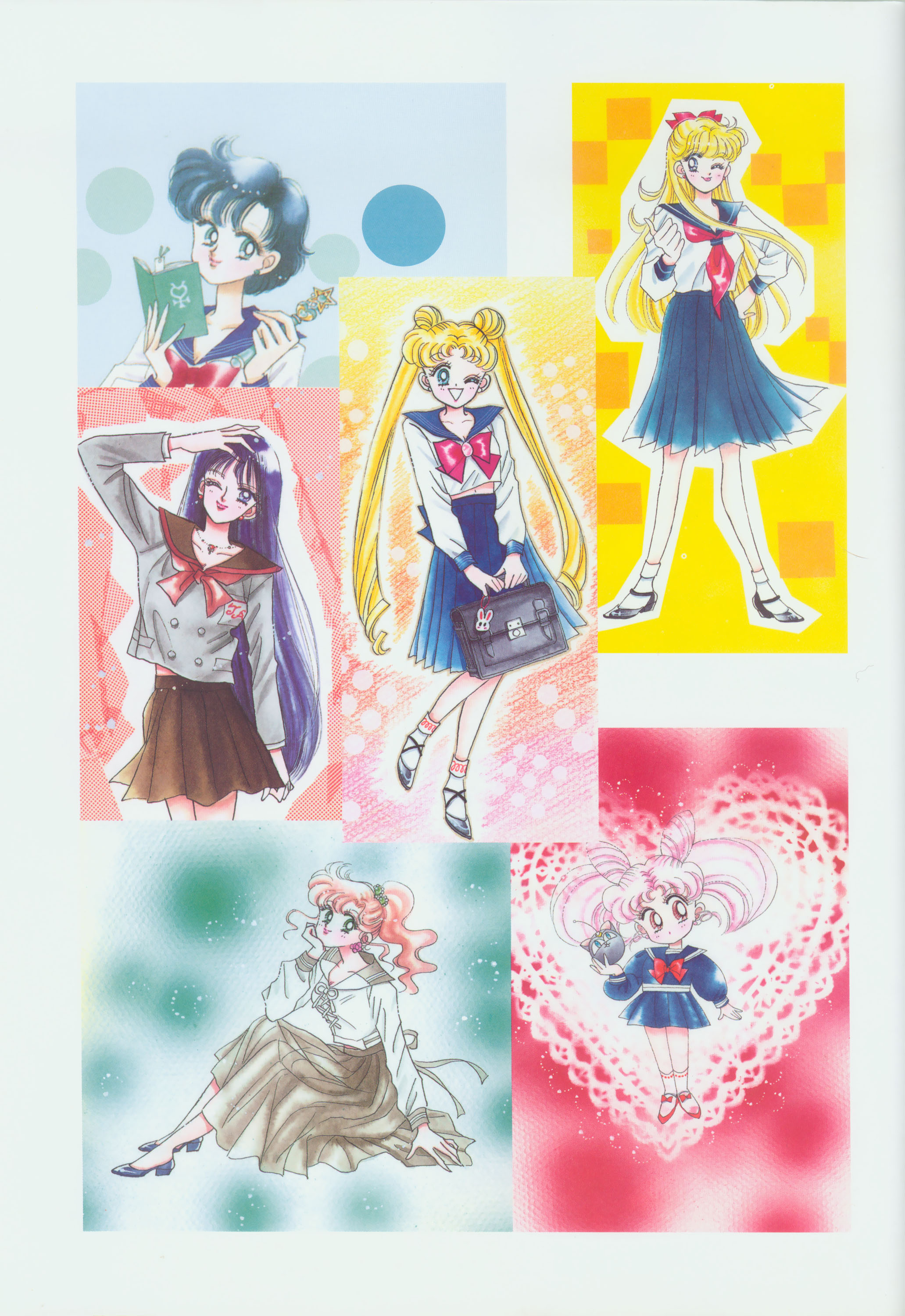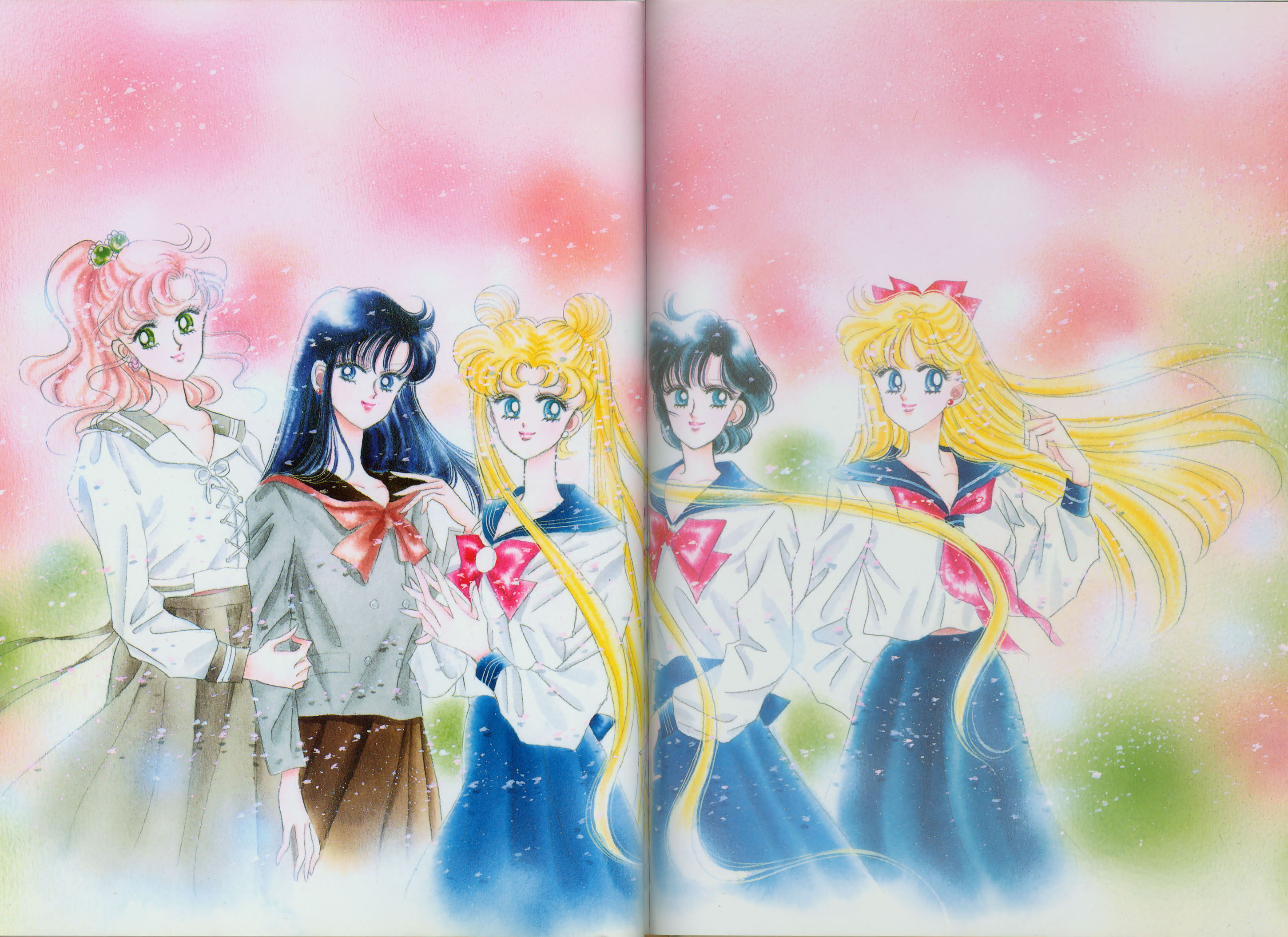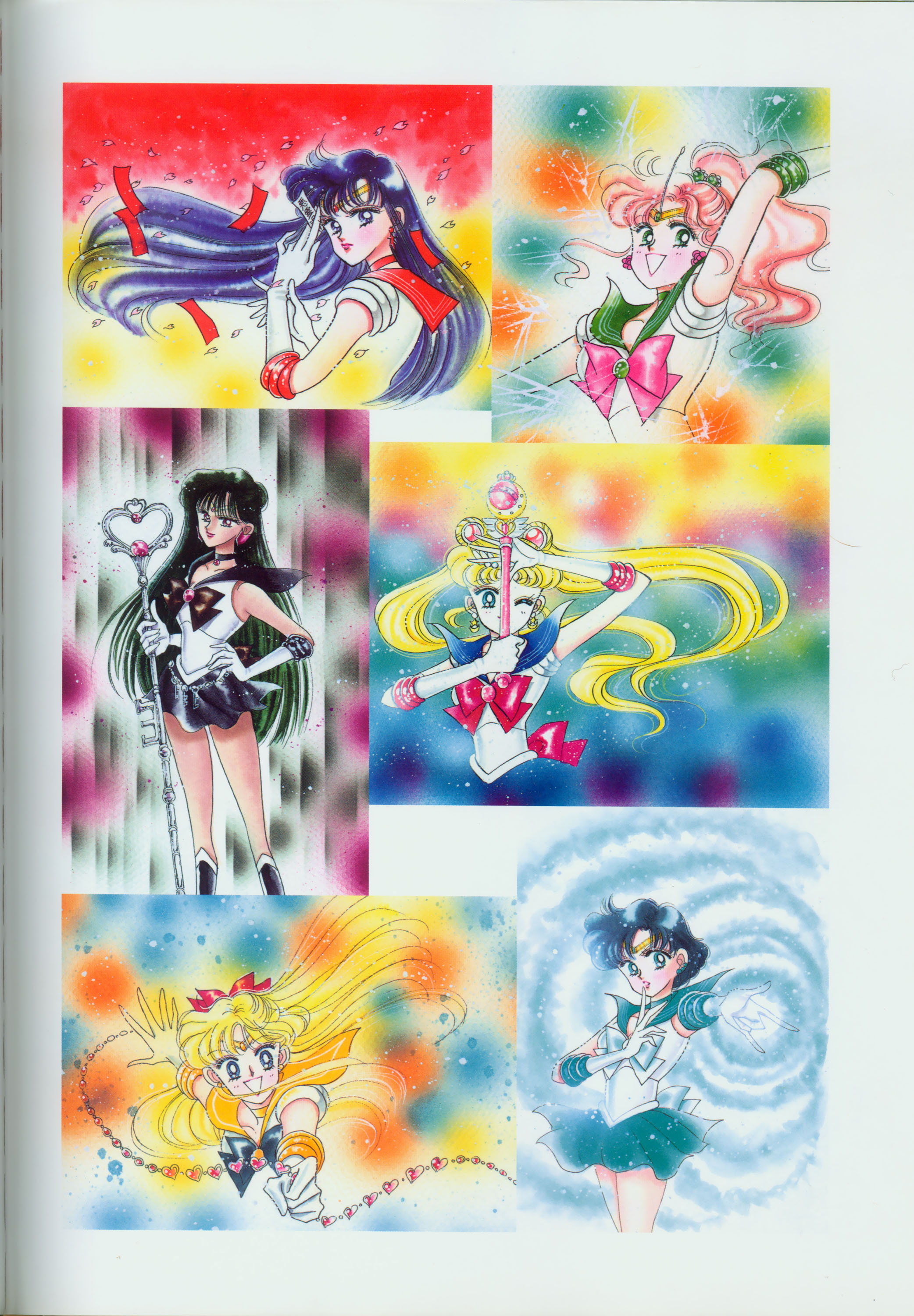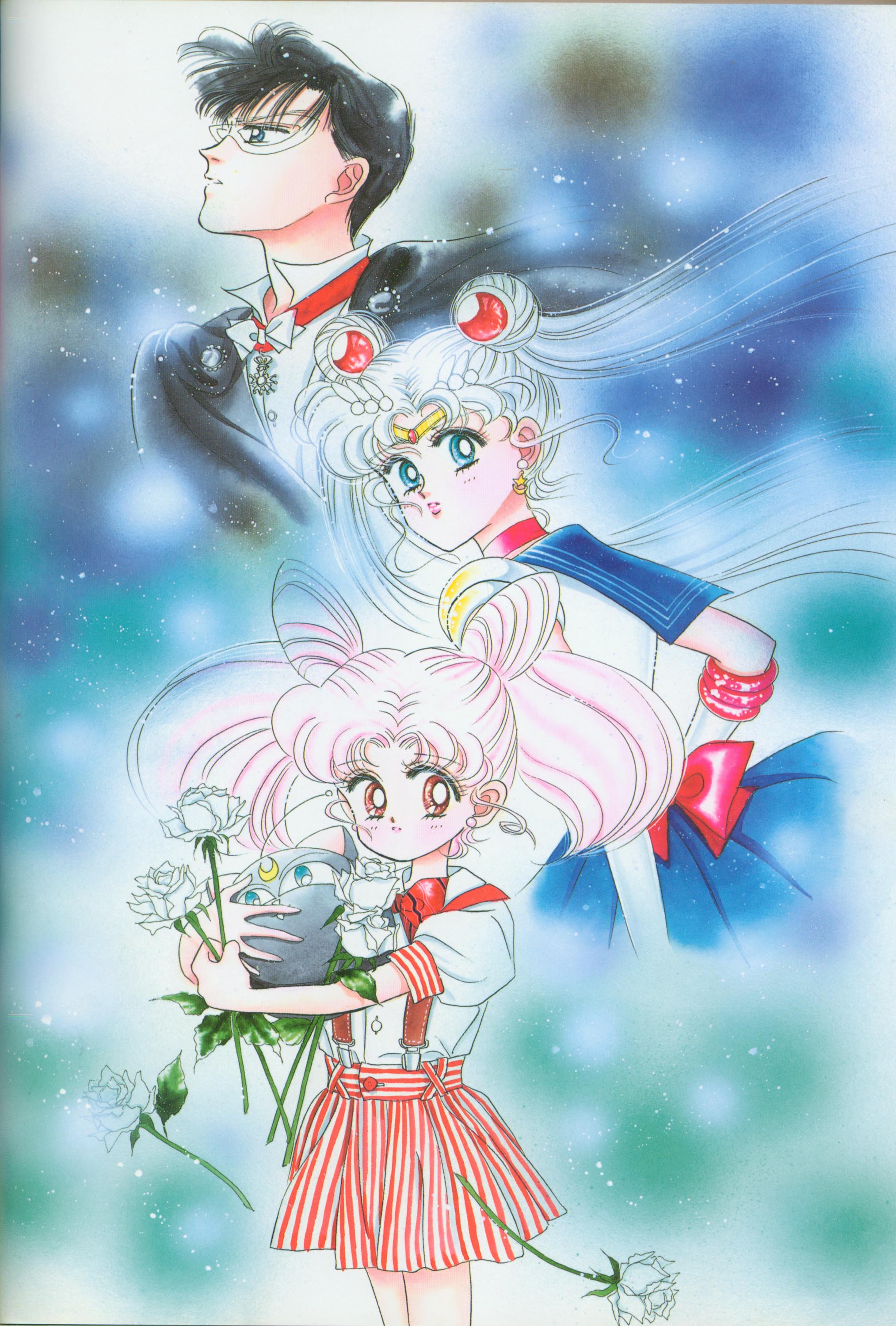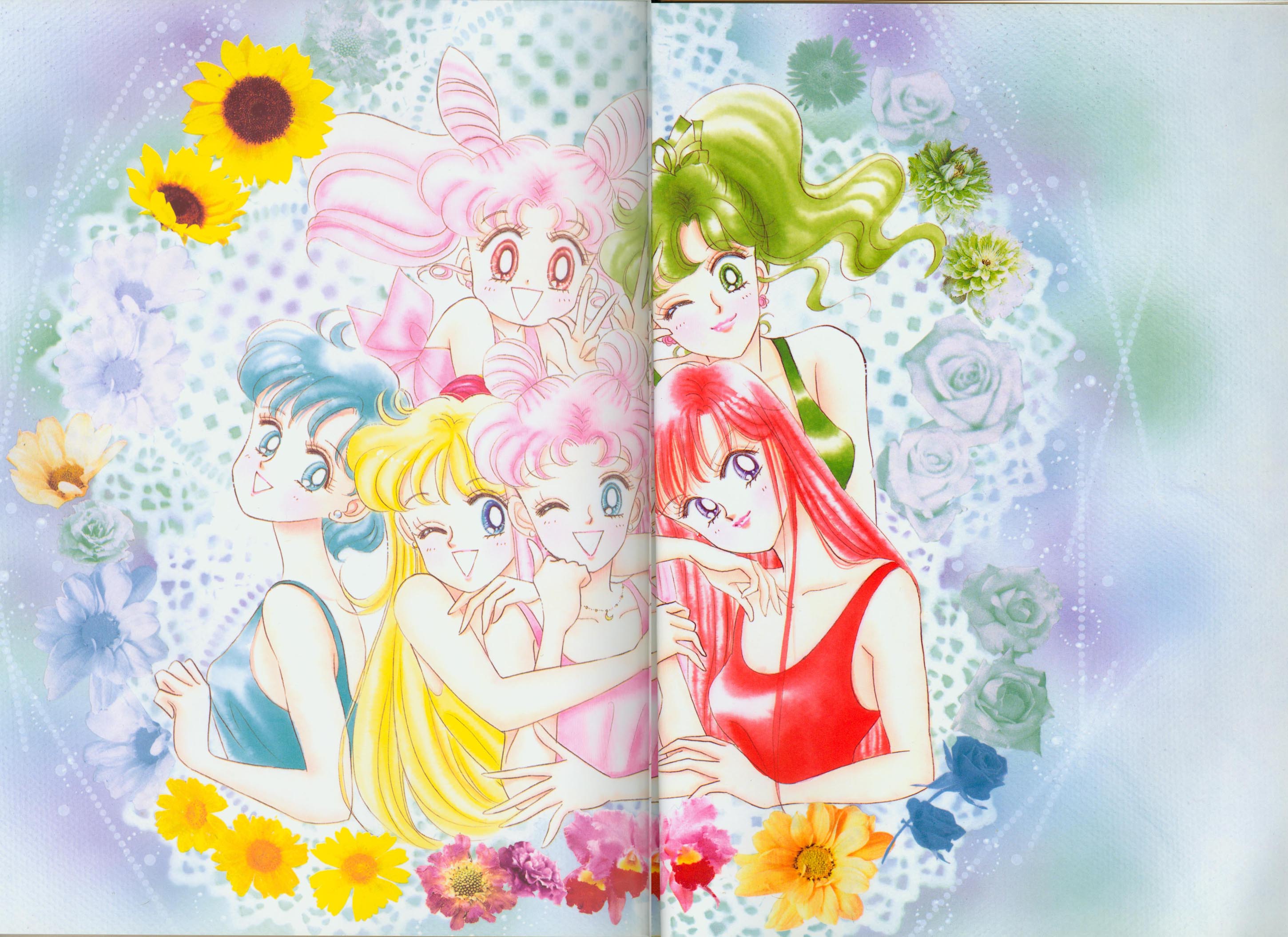 Когда я рисовала эту картинку, мне как раз приходилось производить множество цветных рисунков. У меня не было хороших идей и я была полностью истощена. "Почему я должна рисовать еще и приложения к журналу, хотя я уже рисую так много обложек?" Эта картинка появилась в Японии, как обожка маленького журнала, который назывался "Sailor Moon Official Fan-Book", и описывал первую часть комиксов. Это было для меня очень интересно, и мне очень понравилось. Надеюсь, в будущем продолжат выпускать подобные приложения.