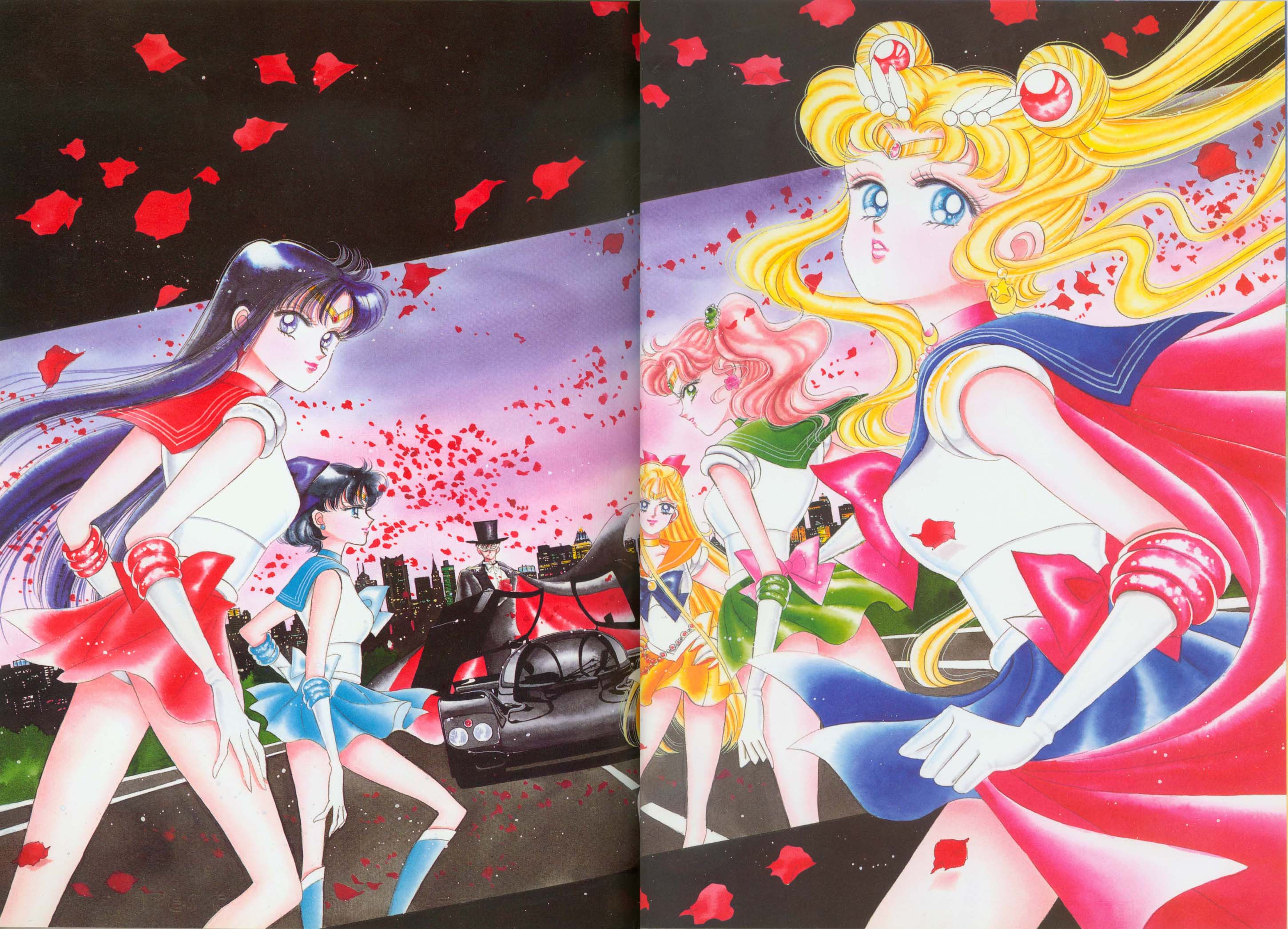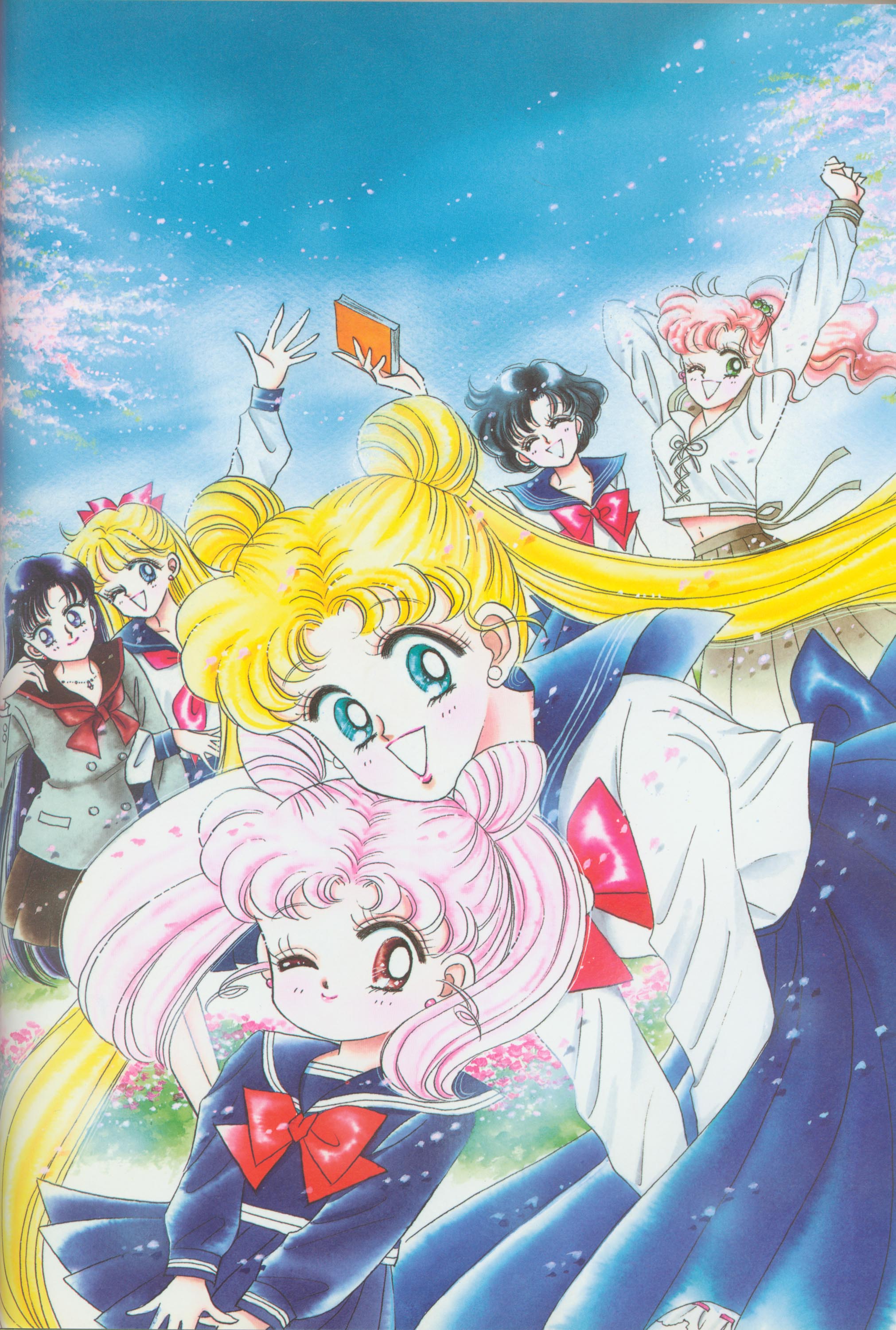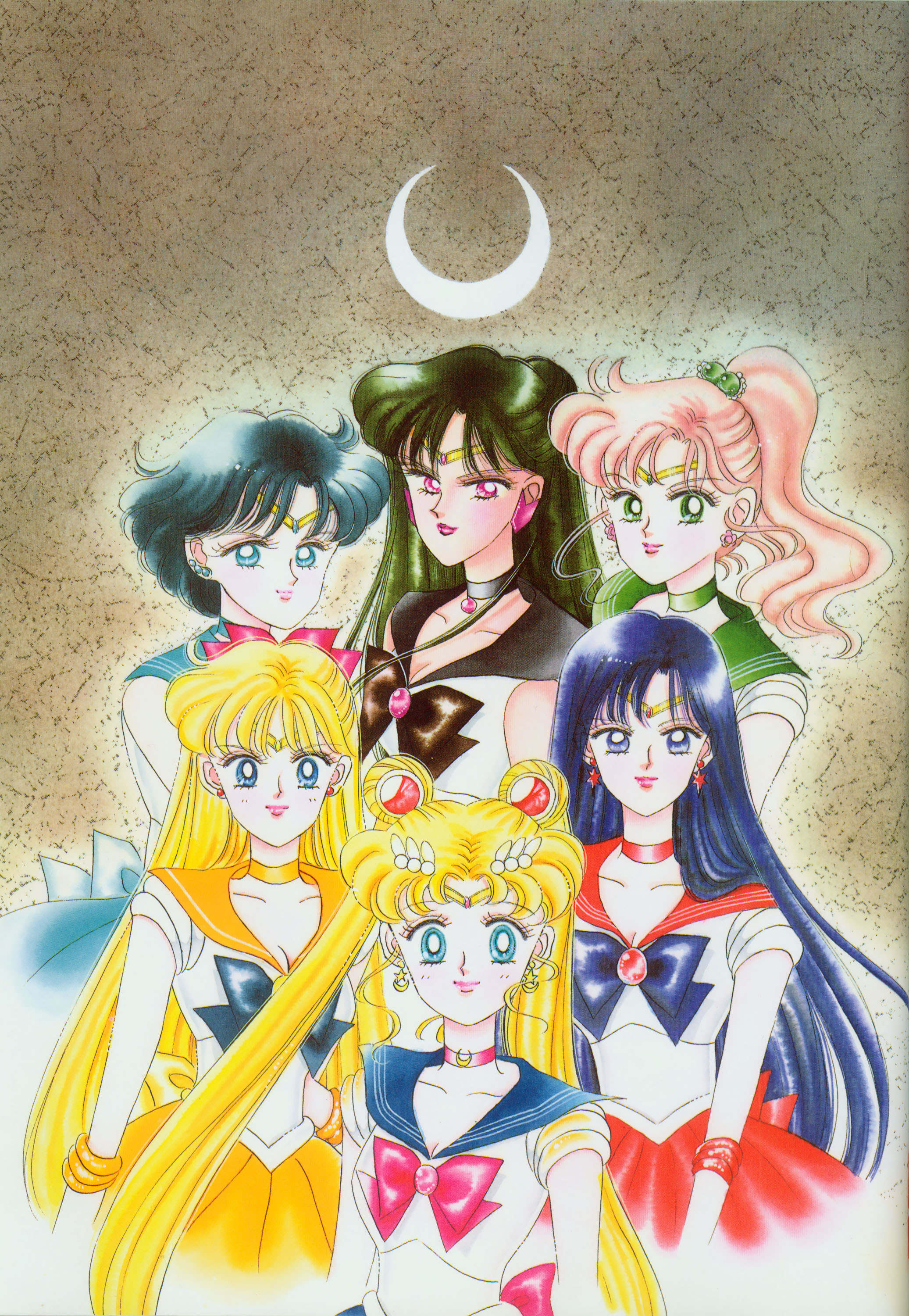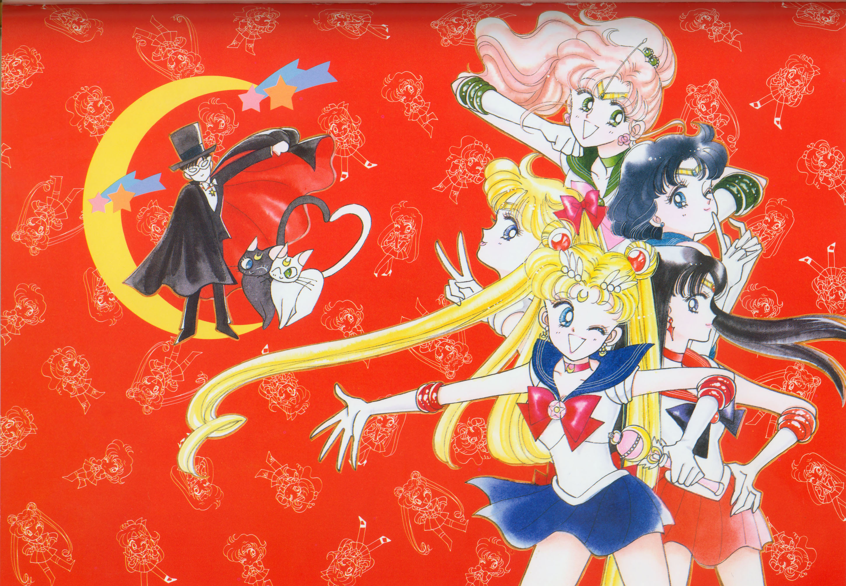Когда я рисовала эту картинку, мне как раз приходилось производить множество цветных рисунков. У меня не было хороших идей и я была полностью истощена. "Почему я должна рисовать еще и приложения к журналу, хотя я уже рисую так много обложек?" Эта картинка появилась в Японии, как обожка маленького журнала, который назывался "Sailor Moon Official Fan-Book", и описывал первую часть комиксов. Это было для меня очень интересно, и мне очень понравилось. Надеюсь, в будущем продолжат выпускать подобные приложения.