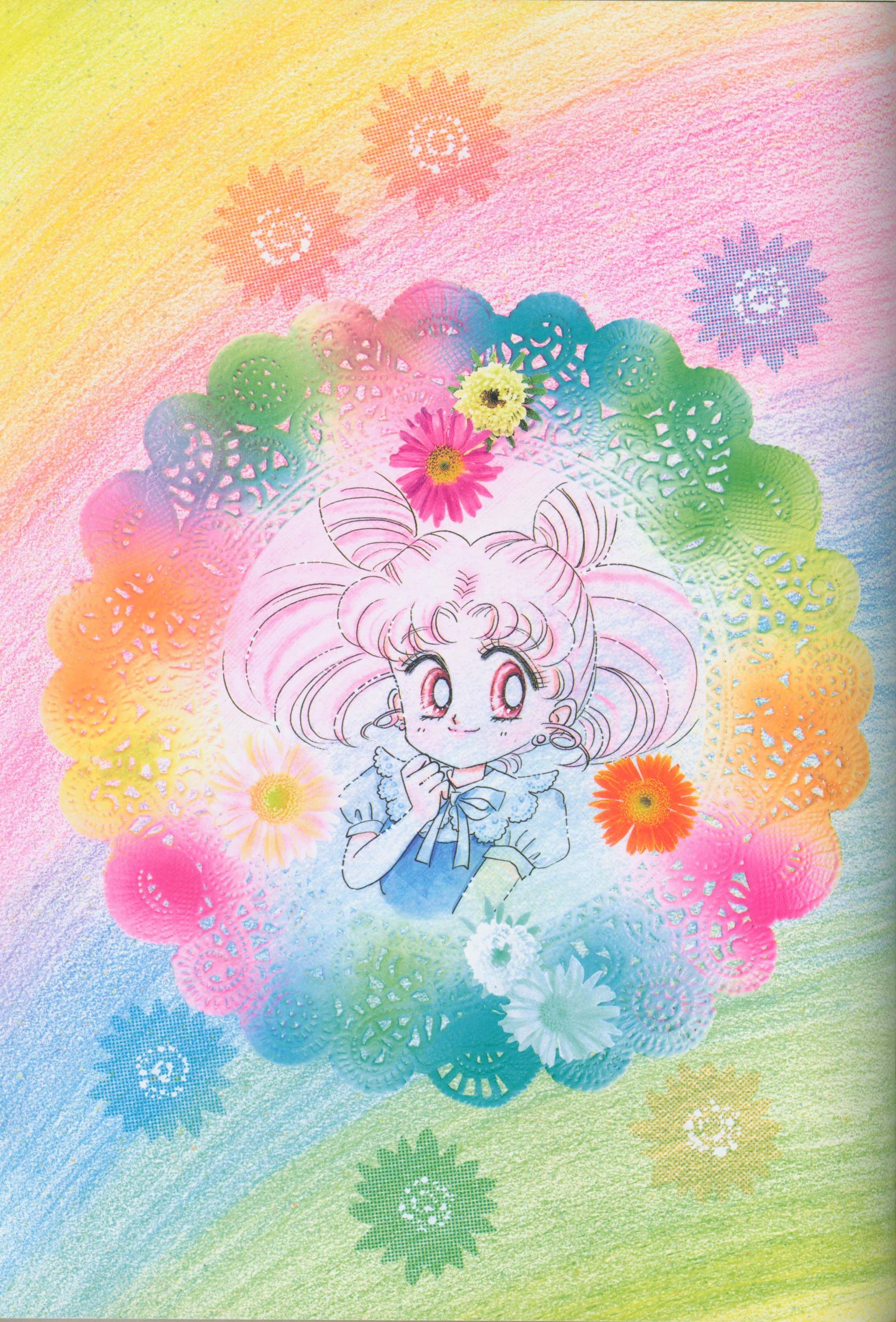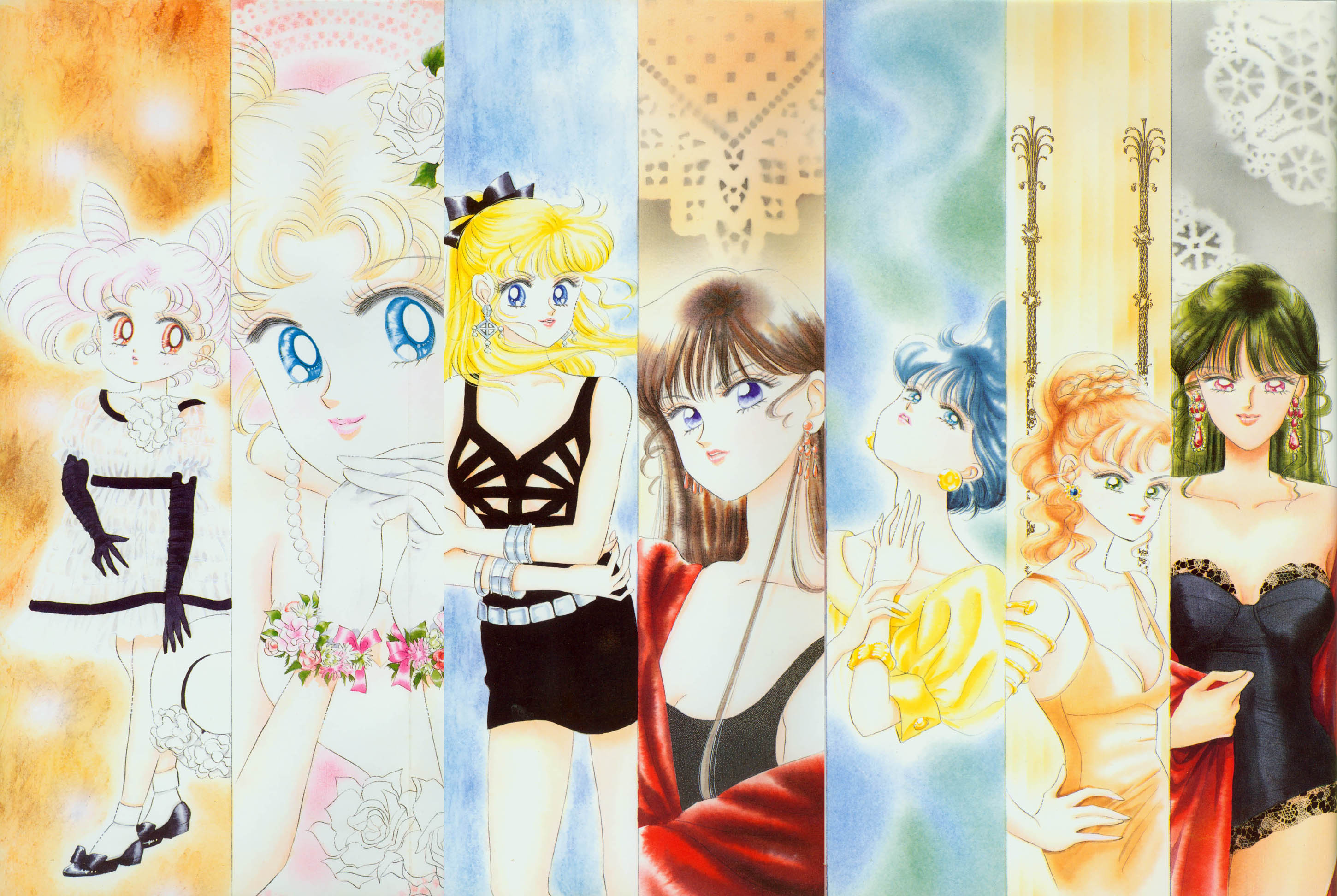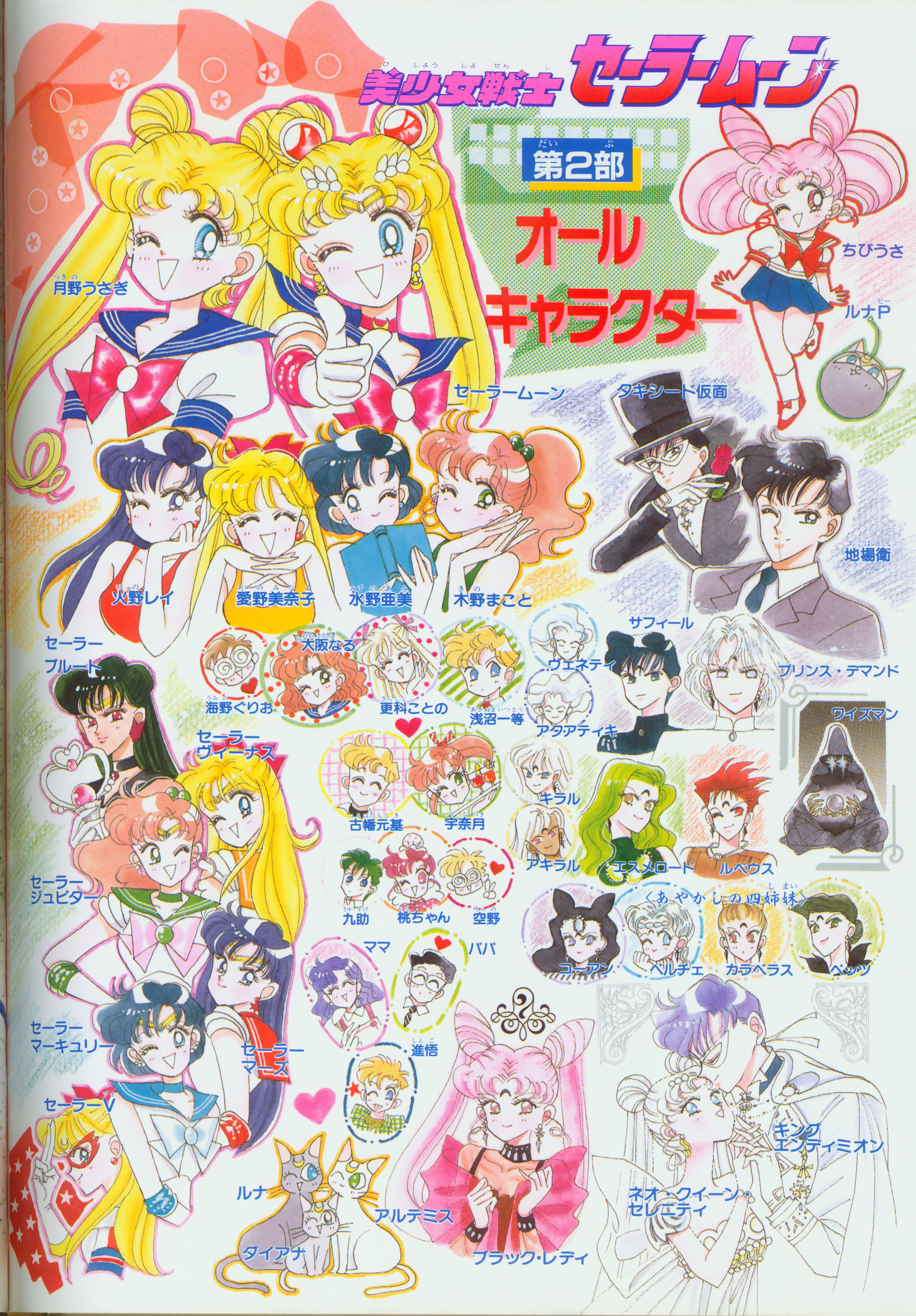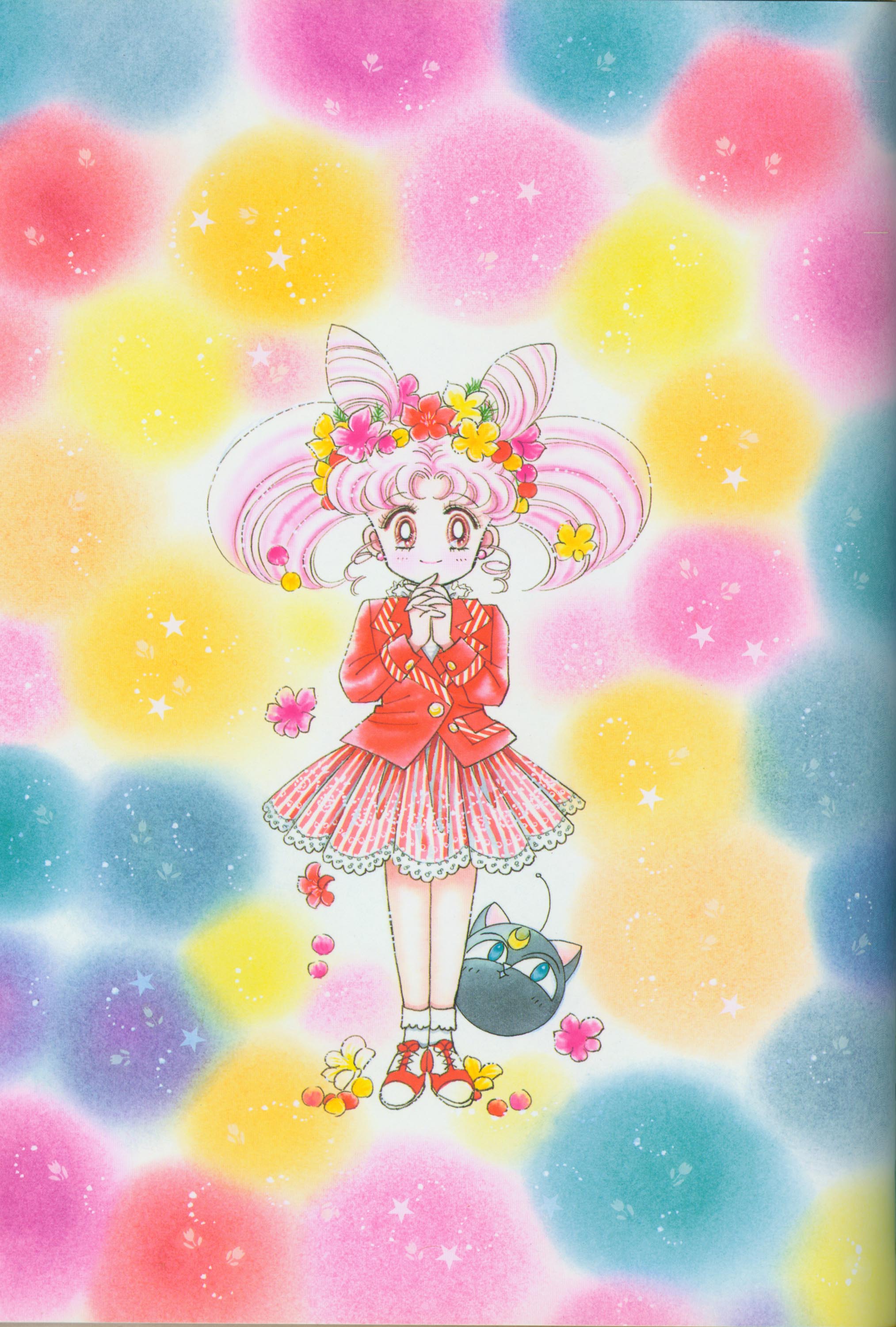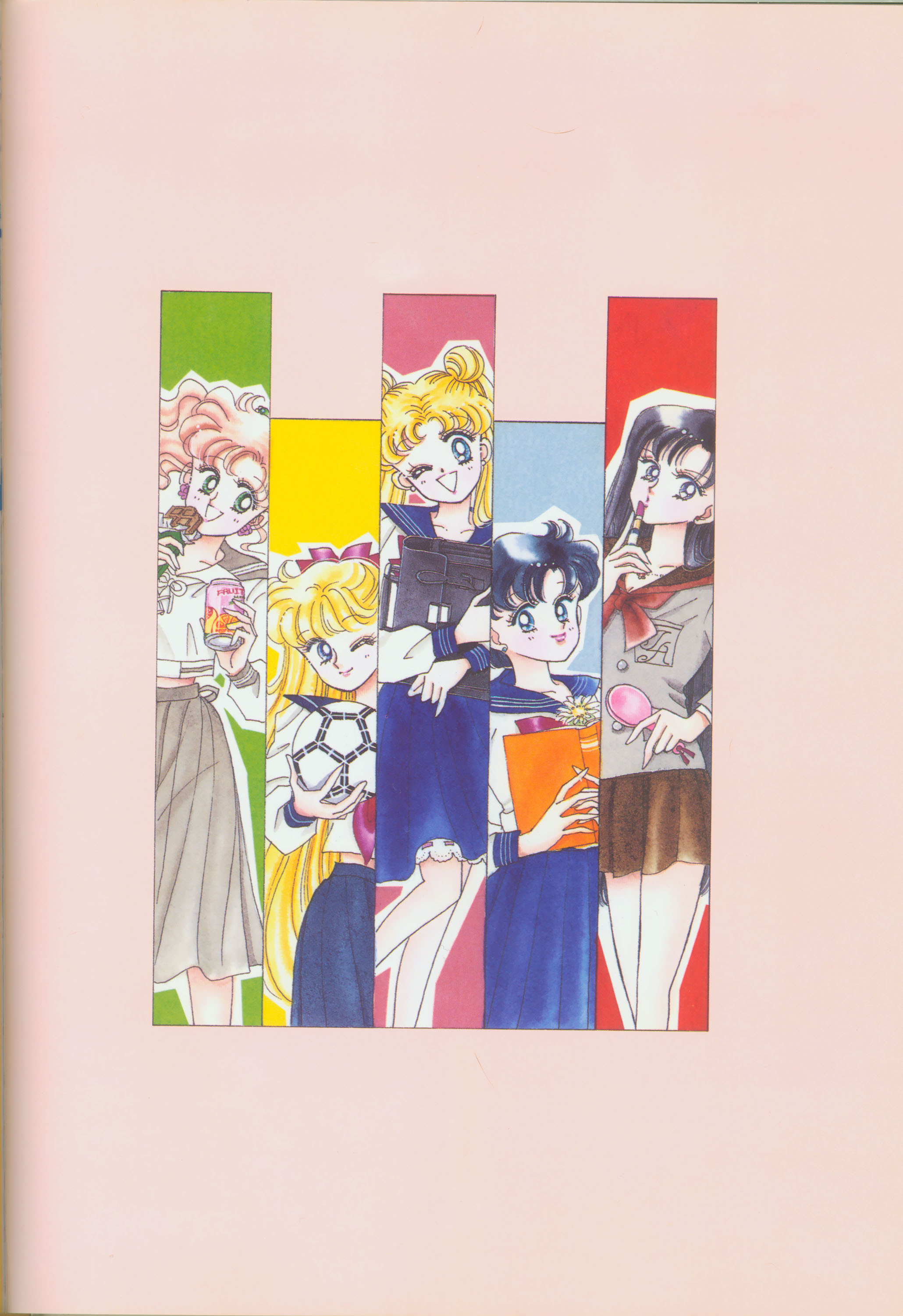 Когда я рисовала эту картинку, мне как раз приходилось производить множество цветных рисунков. У меня не было хороших идей и я была полностью истощена. "Почему я должна рисовать еще и приложения к журналу, хотя я уже рисую так много обложек?" Эта картинка появилась в Японии, как обожка маленького журнала, который назывался "Sailor Moon Official Fan-Book", и описывал первую часть комиксов. Это было для меня очень интересно, и мне очень понравилось. Надеюсь, в будущем продолжат выпускать подобные приложения.