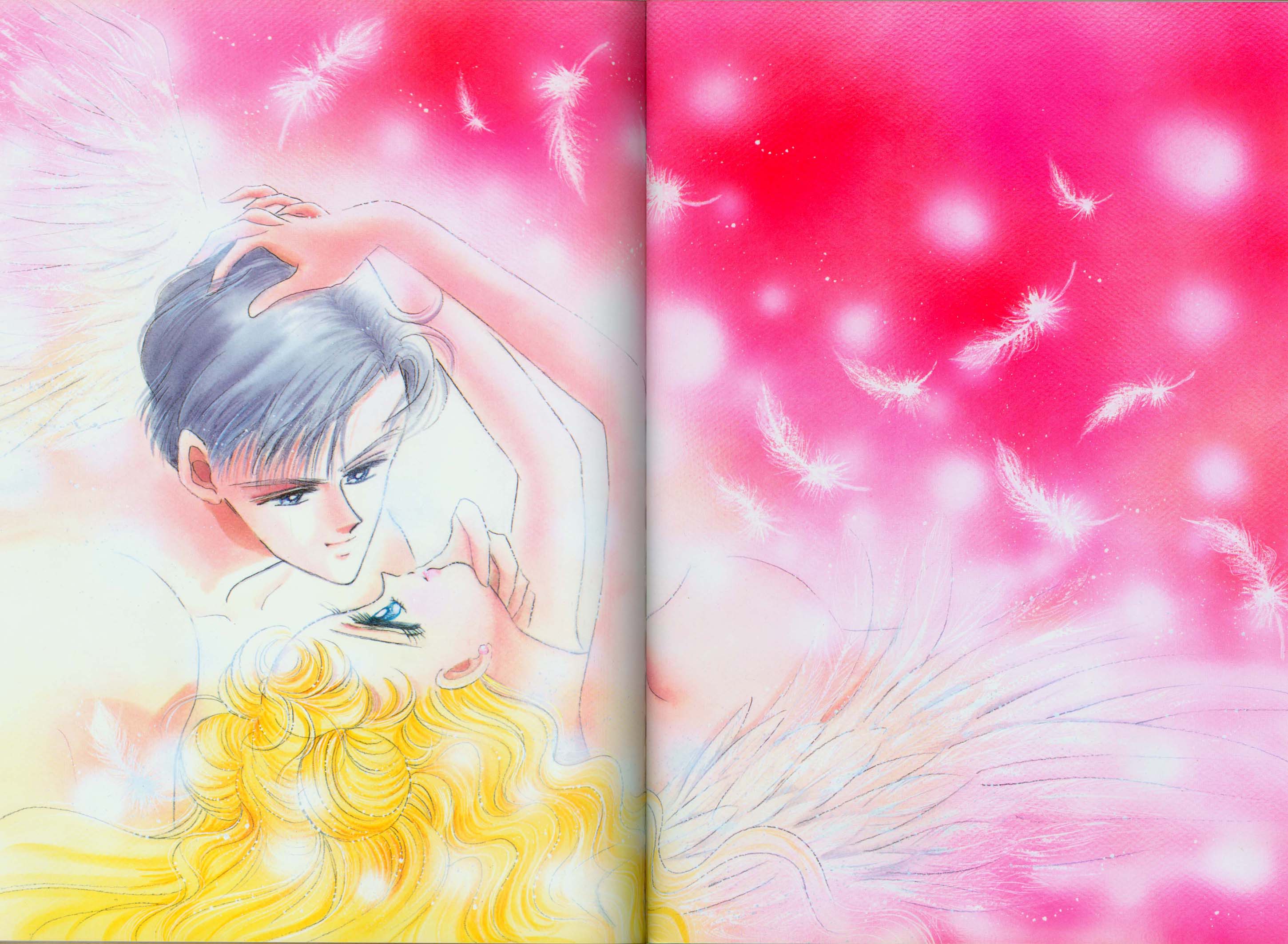 Когда сейю, озвучивающие Сейлор Воительниц, увидели цветную обложку Nakayoshi, они все сказали мне, как эта картинка красива. Я очень этому радовалась. Я нарисовала ее за два часа, так как тогда у меня не было времени. В комиксе подобную сцену с двумя персонажами не часто удается нарисовать, потому я использовала ее для обложки.