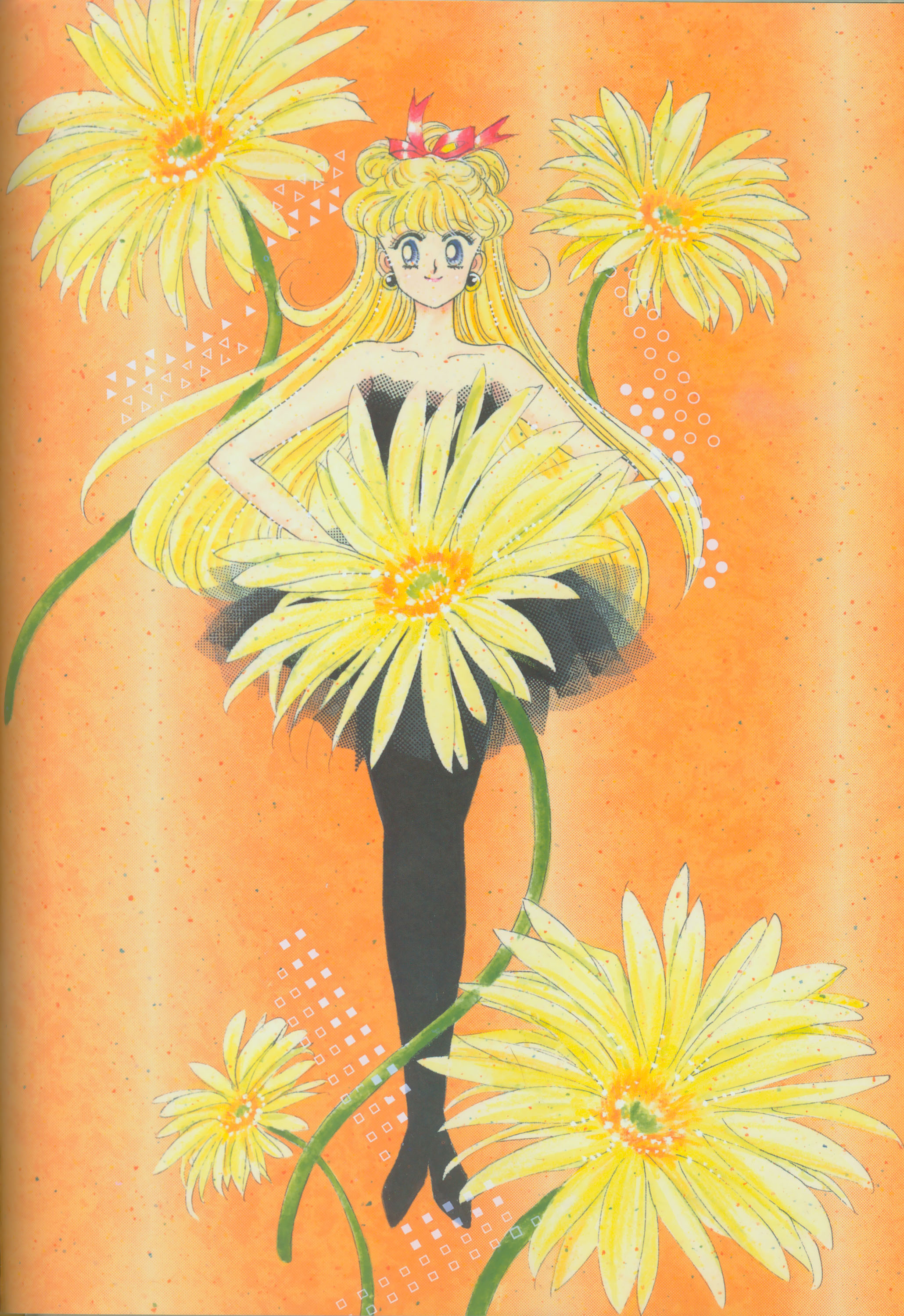 Это была обложка четвертого тома комиксов, который вышел в Японии в количестве 1,2 миллиона экземпляров в первом издании. Когда я работала над этим томом, было решено сделать мюзикл "Сейлор Мун". Я часто виделась с актрисами, которые представляли Сейлор Воительниц. Возможно, подсознательно я нарисовала их лица. Привет, как у вас дела?