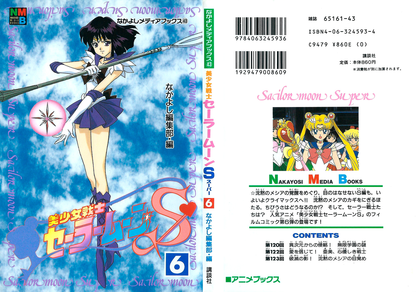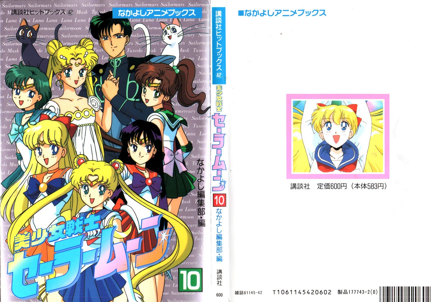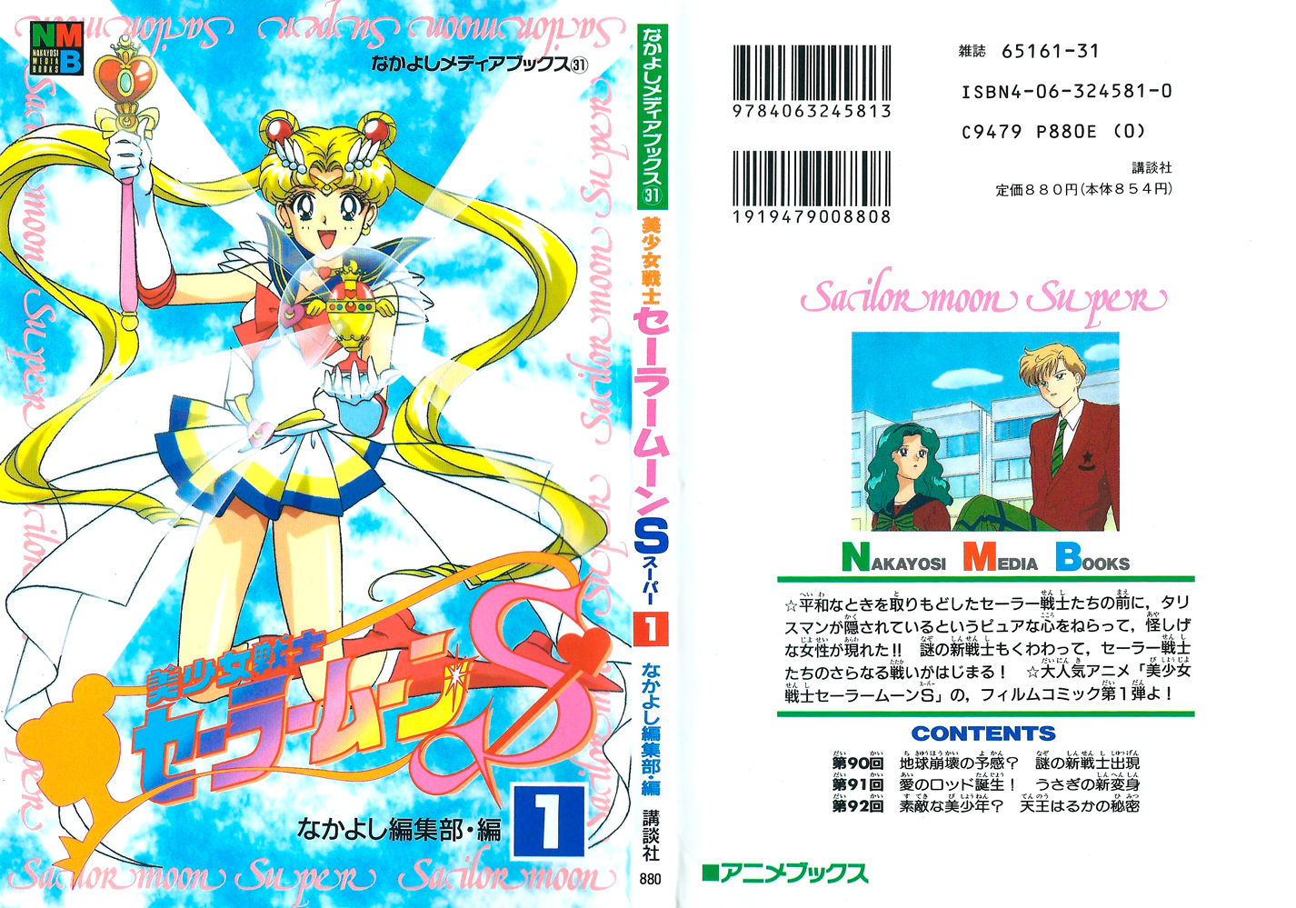 Сама обложка повторяет главное изображение суперобложки, но не в цветном, а в красно-белых тонах. Задняя обложка повторяет картинку задней стороны суперобложки, а также надпись Nakayoshi Media Books и Sailor moon Super (с краю еще есть надпись Anime Books), текста и содержания на обложке нет.