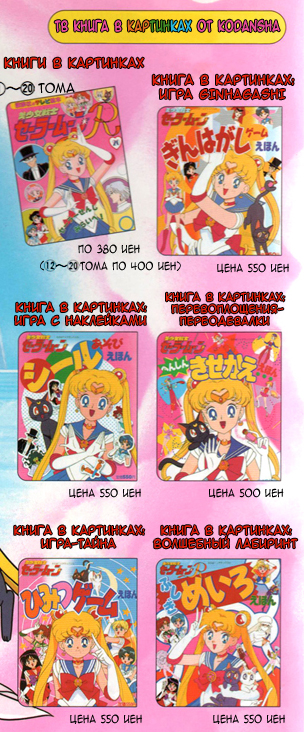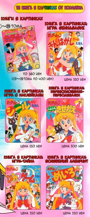 У кого из нас в детстве не было книг, из которых, при открытии, не вырастали картинки? Такие книжки были и у японских детей, в том числе и по мотивам «Сейлор Мун». Было выпущены книги по всем пяти сезонам, причем по нескольку книг на каждый сезон.
