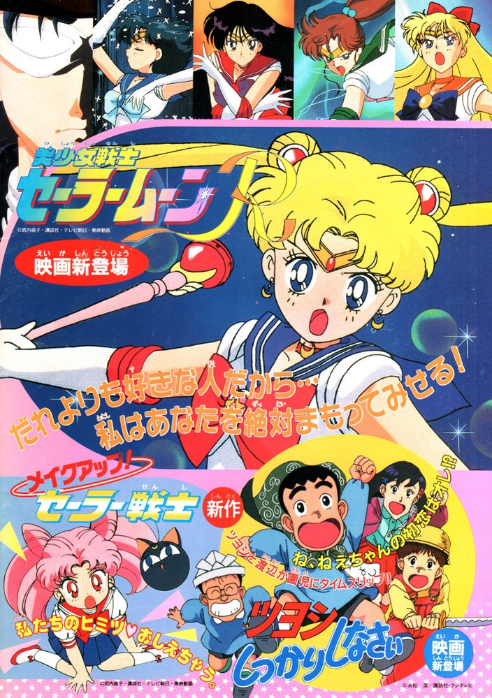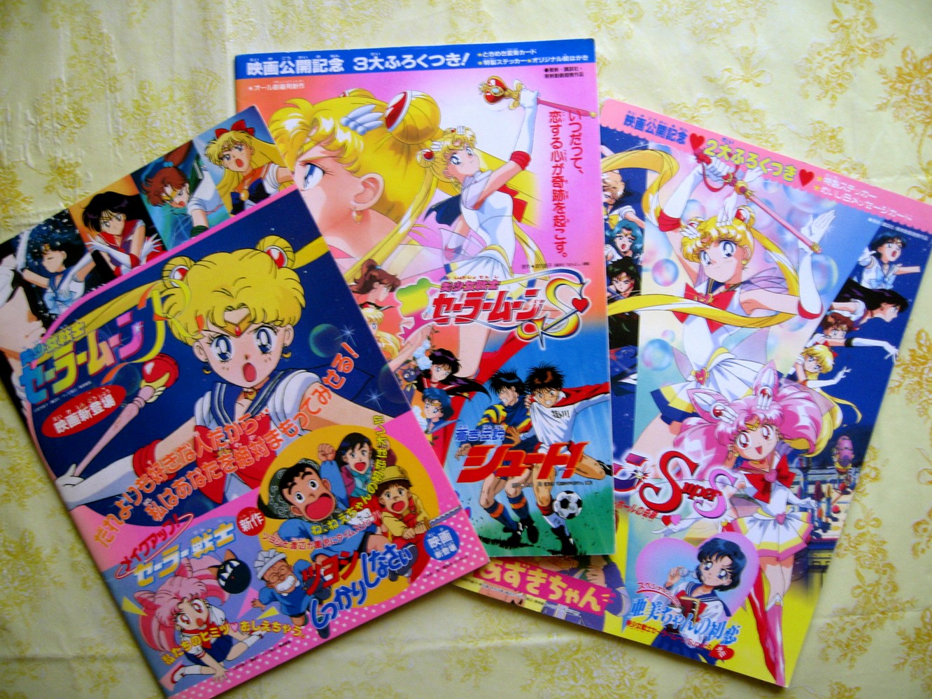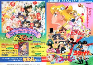 Информация по каждому из трех полнометражных сейлор-фильмов, показанных в японских кинотеатрах, была включена в специальные брошюры. Тем не менее, они охватывали не только фильмы по «Сейлор Мун», но и некоторые другие, что шли в то же время в кино. Брошюры включали обзор трех картин. Так, например, один из памфлетов содержал помимо полнометражки "Sailor Moon SuperS", еще два аниме: "Azuki-chan" и "Ami-chan no Hatsukoi". В брошюры входила различная информация: давалось краткое описание сюжета фильма/спецвыпуска, описание основных персонажей, послание мангаки, присутствовала реклама сопутствующих товаров, манги и комиксов, объявление о мероприятиях с создателями аниме/манги, если таковые намечались.