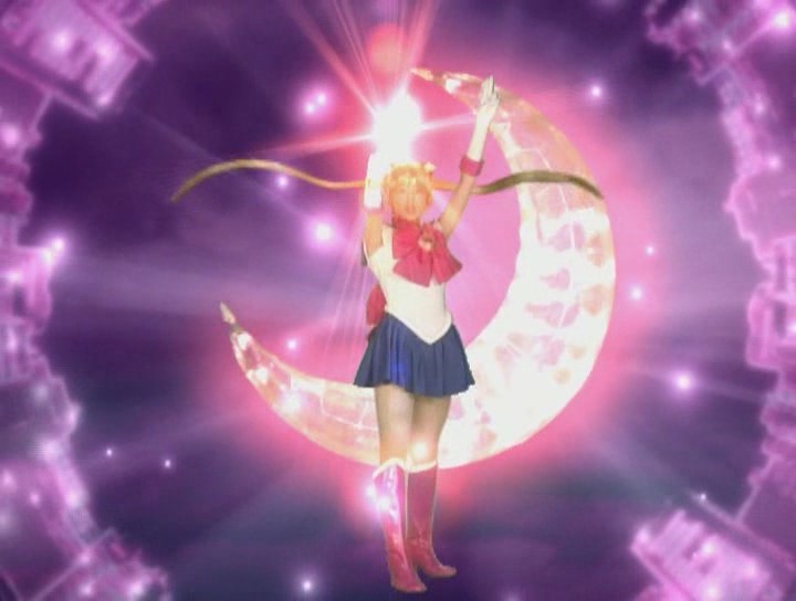 В Live Action Сейлор Мун использовала для этой атаки не диадему, а Палочку Лунного Света. В начале атаки полумесяц на вершине жезла начинал сиять, Сейлор Мун поворачивалась вокруг себя, на некоторое время разделяясь на три отдельные светящиеся фигуры. Когда фигуры, вращаясь, снова объединялись в одно целое, из жезла вырывались шары энергии, которые сжигали врага.