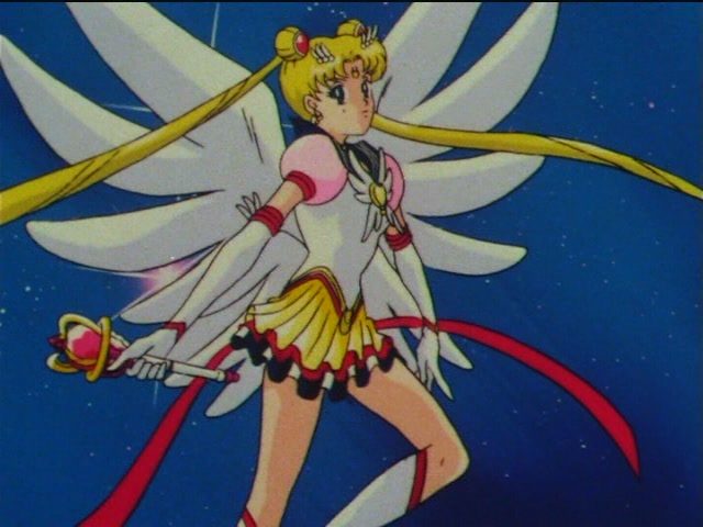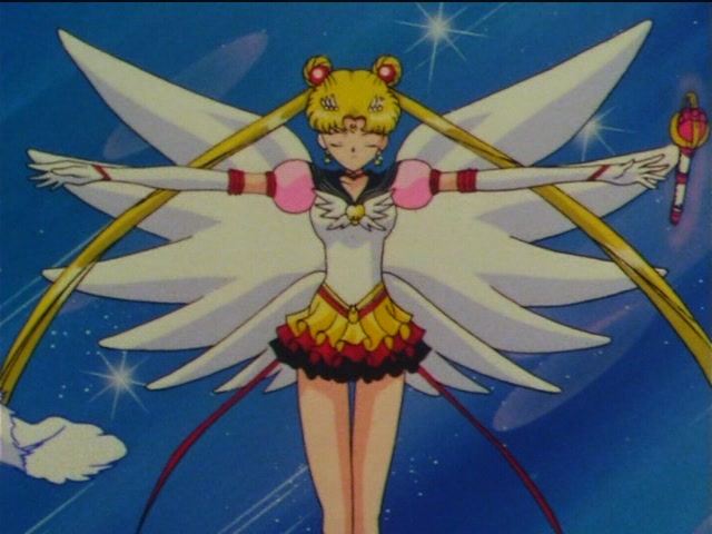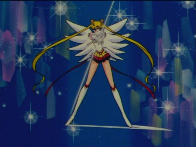 В начале атаки на экране появляется Вечный Жезл. Кристалл на его верхушке излучает потоки радужного света и жезл начинает быстро вращаться. Позади жезла появляется Сейлор Мун. Следуя ее движениям, жезл, вращаясь оборачивается у нее над головой и в конце концов снова оказывается перед воительницей. Сейлор Мун берет его в правую руку и экран заливает светом. Воительница выкрикивает слова атаки, оборачивается вокруг себя, держа жезл у себя над головой. Розовый свет вспыхивает на верхушке жезла и устремляется в демона. После этого демон кричин "Прекрасно!" и превращается обратно в человека.