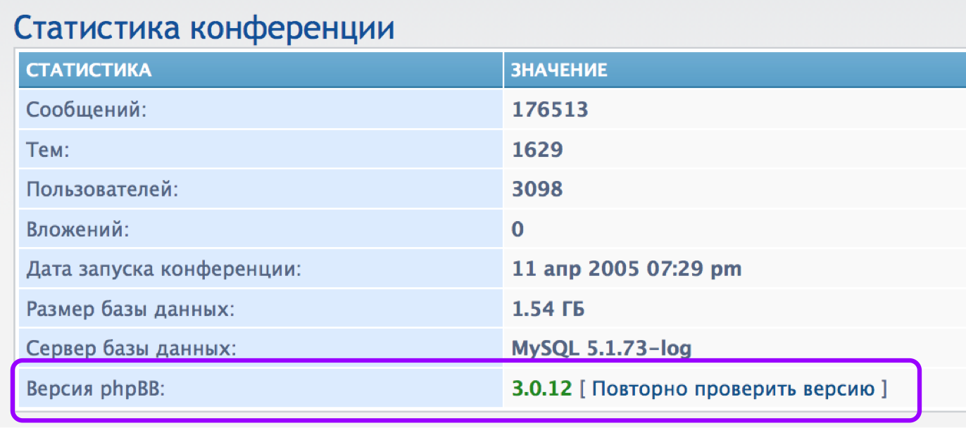 На первой же странице в “Статистика конференции” проверь версию форума: