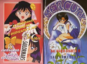 Японские официальные фан буки Сейлор-команды были переведены и на итальянский язык. В каждом по 64 страницы, размеры 12,7 см х 17,8 см х 0,4 см (примерно B6). Книги были выпущены издательством «Diamond». Кстати сказать, это же издательство занималось и немецкими фан буками. Стоила каждая книга 4500 итальянских лир, т.к. они выходили еще до введения евро. Тем не менее, по словам Unica, нашего корреспондента в Италии, книги до сих пор (!) продаются в итальянских киосках (справка: статья написана в июле 2012 года). Так что Италия еще удивляет нас своими запасами, хотя, как отмечала Unica, фан буки уже встречаются достаточно редко. Причиной тому, очевидно, то, что вышли они в 1996 году и, насколько мне известно, с тех пор не допечатывались.