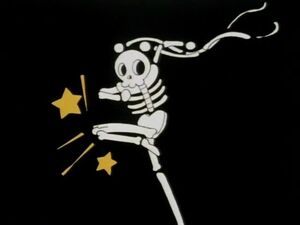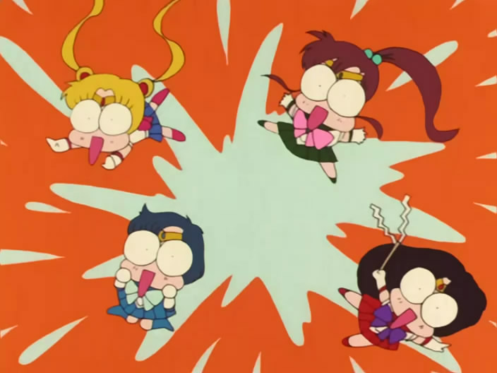 Когда Усаги применяет "атаку" "Sailor V Kick" и её нога врезается в дверь, один кадр изображает нашу будущую воительницу "скелетиком".