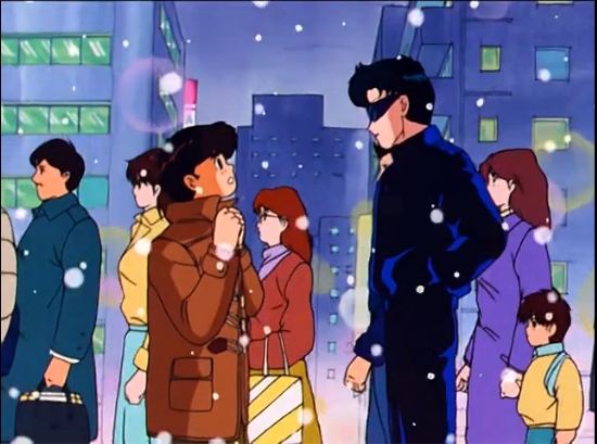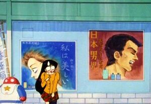 Рэй и Юичиро, случайно встретившись, беседуют некоторое время на фоне плакатов. И происходит чудо: лица нарисованных героев меняются. Что это - ляп или намек на изменившееся настроение персонажей?