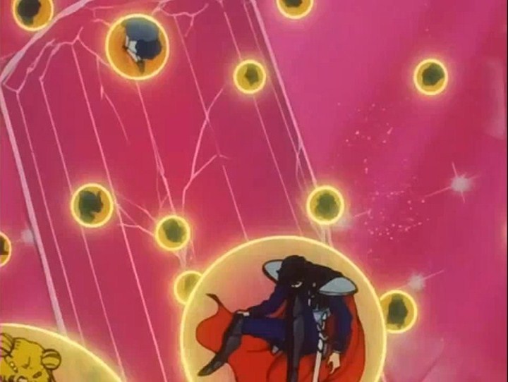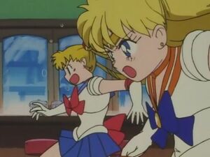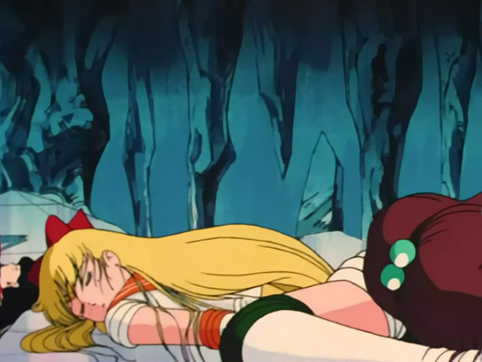 Видимо, когда рядом ёма, всегда начинают происходить всякие странности. Вот и в этом эпизоде у Сейлор Венеры вдруг на несколько секунд исчез один из аксессуаров, прилагающихся к её сейлор-фуку, - перчатки.