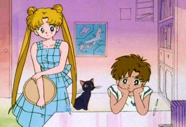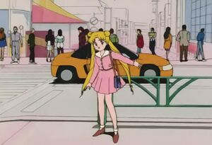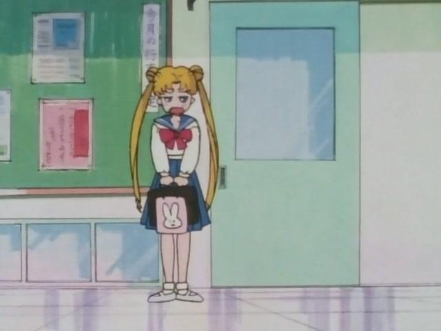 Усаги выходит из дома в черных туфлях, в школе же на ней обувь белого цвета. Это вовсе не ляп. Школьный день каждого японского ученика начинается с переобувания, ученик меняет свою повседневную обувь на специальные школьные тапочки - увабаки. Такие белые тапочки можно увидеть (и не только на Усаги) во многих других сериях.