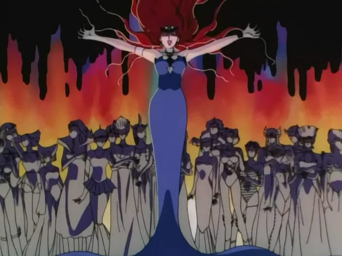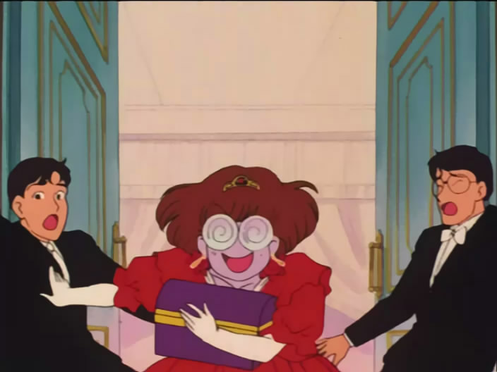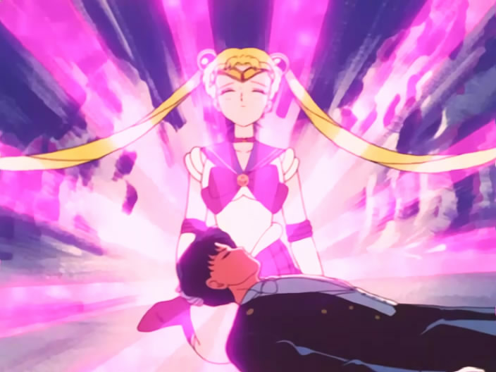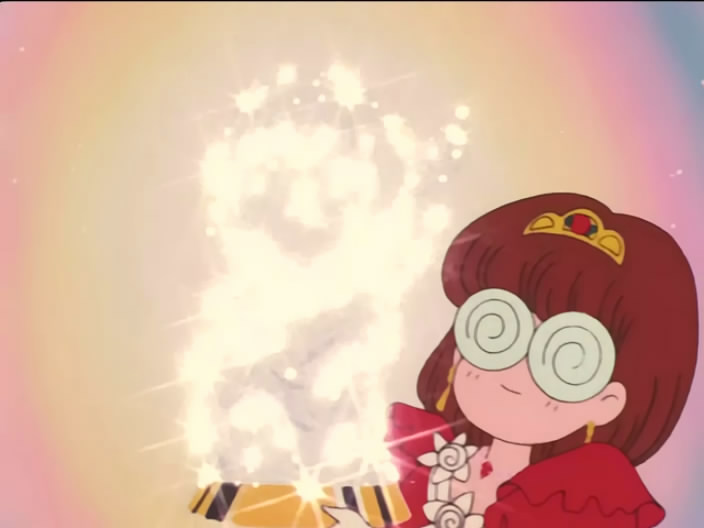 В конце битвы Сейлор Мун бросает диадему, и она надевается на демона, но, когда тот становится человеком, диадемы не видно.