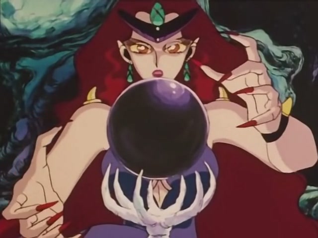 Мы впервые видим Тёмное Королевство и сидящую на троне Королеву Берилл с её магическим шаром. В какой-то момент этот шар таинственным образом исчезает на 3 или 4 кадра. Видимо, это сорт "зловещего" спецэффекта.