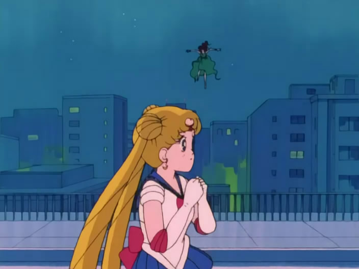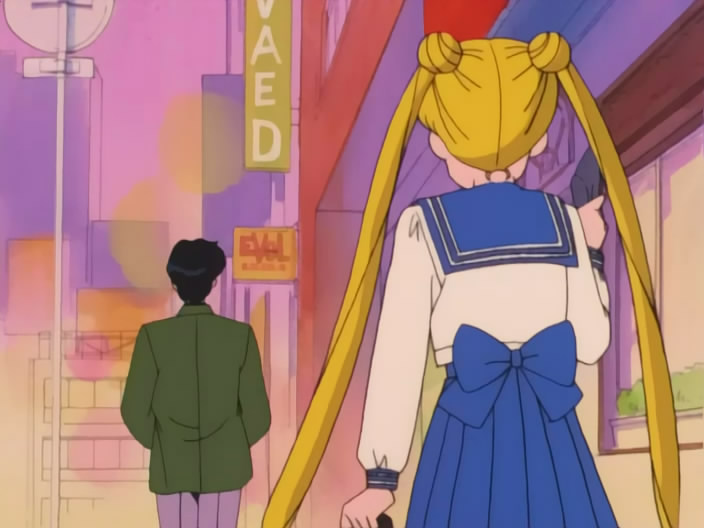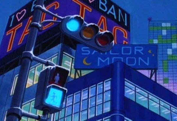 Если вы сможете отвлечься от драки Сейлор Юпитер и Темного Эндимиона, то увидите на одном из зданий красноречивую надпись "Sailor Moon".