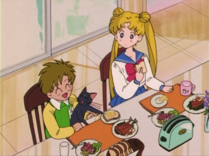 Узелок с завтраком, который Луна пытается передать нашей соне, украшен кроличьими ушками (такой же фигурирует и в 55 серии). После нападения на Усаги, он не понятно куда исчезает (может его раздавил при падении кто-нибудь из бандитов?).