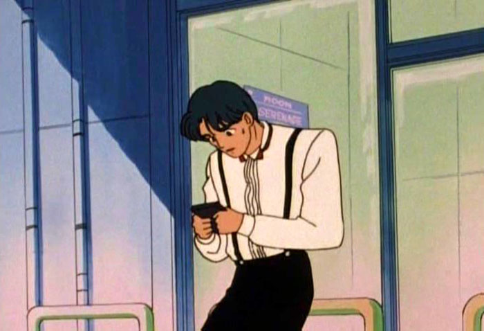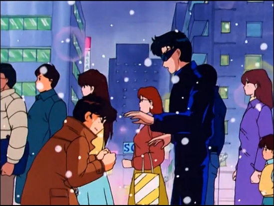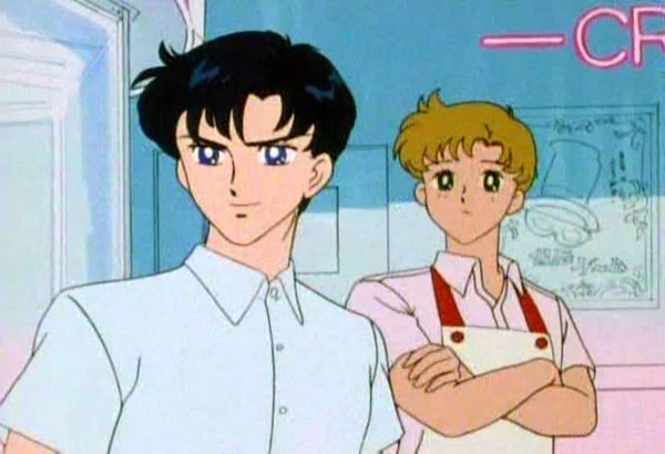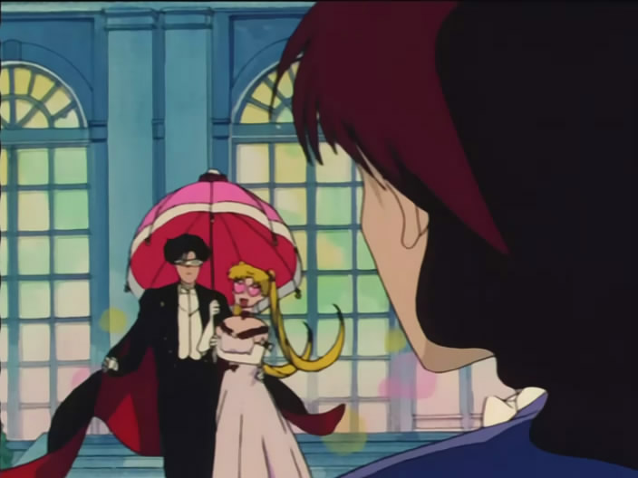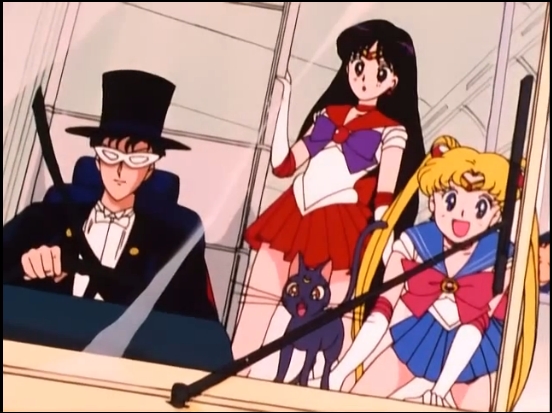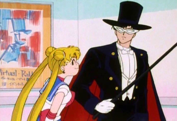 А в этом эпизоде за спиной Мотоки и Мамору можно увидеть плакат с кем-то очень похожим на Таксидо Камэна. На нем написано "Kamen Ge~mu" ("Mask Game")