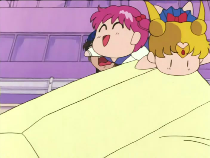 В этой серии Ами лишается сумки. Отвлеклась буквально на секунду (на Луну), и сумки как не бывало. Воришки? Или ляп аниматоров?