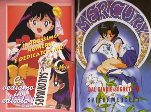 Сопоставление некоторых страниц итальянской (вверху) и японской версии (внизу) фан бука "Сейлор Мун":