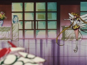 Перед тем как фаг нападает на Супер Сейлор Мун на воротнике ее показаны две полоски вместо трех.