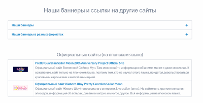 Раздел ссылок приведен в порядок - удалены все битые ссылки и добавлены несколько отличных информативных сайтов на английском языке. Если ты знаешь хорошие сайты о Сейлор Мун с множеством подробной информации или с большими коллекциями эксклюзивных сканов и переводов - пришли ссылку Selina Kou Seiya на е-маил selina.ks@gmail.com и мы с удовольствием добавим этот сайт на страницу ссылок! Спасибо!