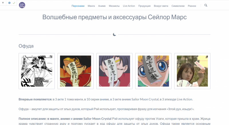 Обновлён раздел волшебных предметов Сейлор Марс - добавлены описания и картинки всех атрибутов Воительницы. Если у тебя есть желание дополнить раздел новой информацией – пиши Selina Kou Seiya на е-маил selina.ks@gmail.com.