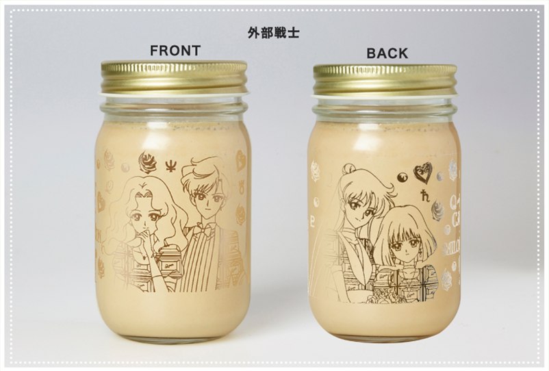 - Мусс 2 видов со вкусом чая с молоком: с "иннерами" и "аутерами". Помещён в баночки с изображениями воительниц, их символов планет, узором из роз и надписью "Q-pot. Sailor Moon". Цена за баночку - 750 йен.