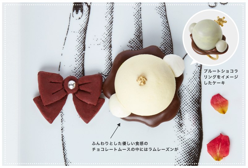 - Пралине "Сейлор Плутон": пирожное-пралине в форме навершия жезла для трансформации Сейлор Плутон, украшенное наверху небольшим золотистым элементом + бант из шоколада, украшенный блестящим кристаллом в центре, как символ Сейлор Сатурн. Традиционная тарелка с узором руки. В съедобном "браслете" на этот раз, вместо шоколадной конфеты - красный леденец в форме сердца, обычные "жемчужины" из сливок и лепестки роз. Цена - 2200 йен