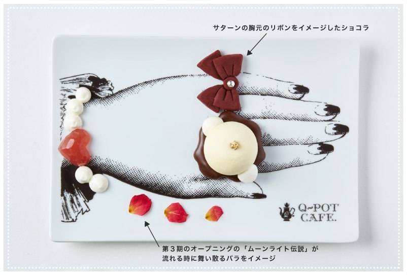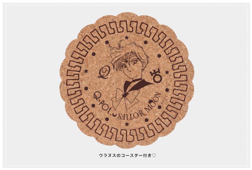 - К каждому десерту будет подан напиток с узорчатой подставкой, изображающей ту или иную воительницу с её символом, буквой "Q" и надписью "Q-pot. Sailor Moon".