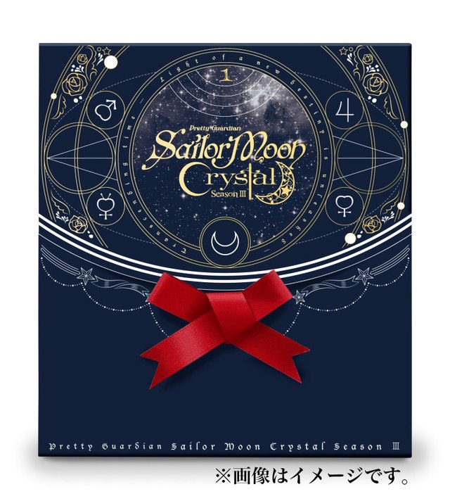 Вместе с этим, сегодня была показана обложка к первому, лимитированному, Blu-Ray боксу по 3 сезону СМК. Как уже упоминалось ранее, 3 сезон СМК будет издан в 3 форматах: ограниченном Blu-Ray-издании, лимитированном DVD-издании и стандартном DVD-издании. Все лимитированные издания будут иметь 28-страничный буклет, в качестве дополнения и упакованы в специальные боксы. Оба вида издания - лимитированное и обычное - будут содержать аудиокомментарии от Котоно Мицуиши (Сейлор Мун), Дзюнко Минагавы (Сейлор Уран) и Саяки Охары (Сейлор Нептун), для 1 тома. В сам 1 том войдут первые 4 серии - с 27 по 30. Помимо этого, пр покупке лимитированных изданий можно получить следующие бонусы: