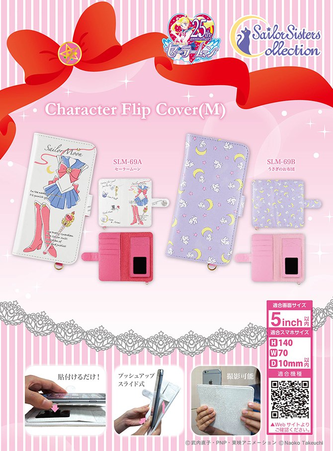 Вместе с этим, сегодня, «Gourmandise», в своей линейке «Sailor Sisters Collection» анонсировали ещё 2 чехла для смартфонов размером до 140х70х10 мм. – белый, с униформой и предметами СМ из 2 сезона (внутри - ярко-розовый) и сиреневый, с узором одеяла Усаги (внутри – нежно-розовый). В каждом чехле имеют место «кармашки» для карточек и визиток.