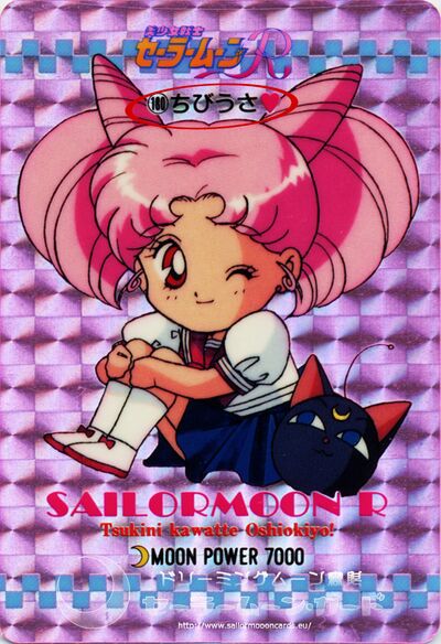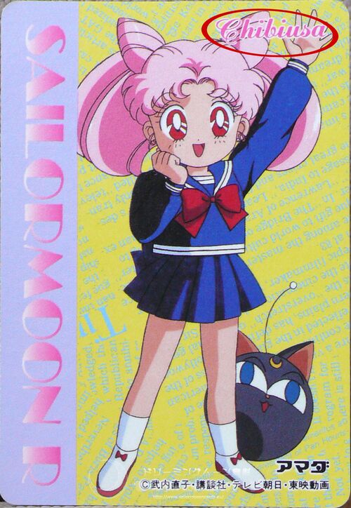 Я перелопатила горы карточек, но, честно говоря, нигде кроме «Чиби Усы» не нашла другого имени этой девочки. Сразу хочу сказать, что смотрела я лицензионные японские карточки фирм «Амада», «Бандай», «Банпресто» и «Марусёу». «Левые» карточки лично на Чиби Усу я не видела, но знаю примеры на Принцессу Серенити. Там такого понаворотили, мама не горюй!