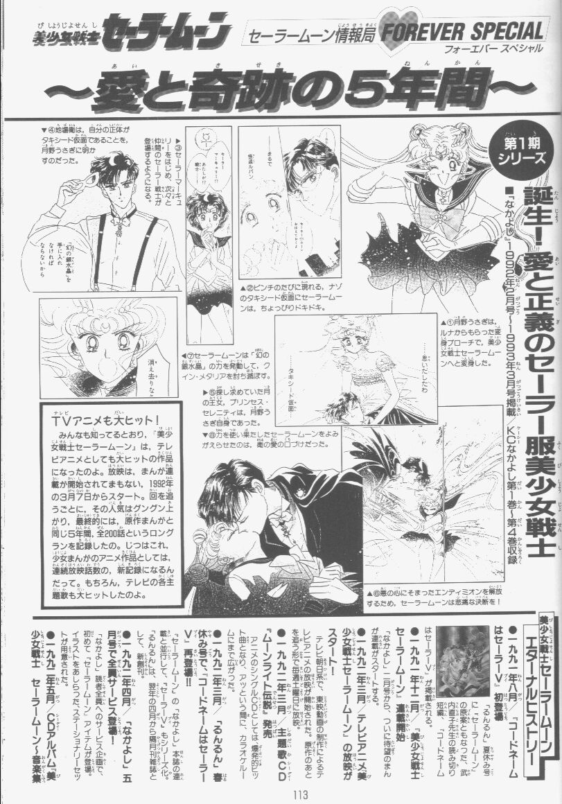 Выпуск Sailor Moon Forever Special - это краткое содержание всей истории, изложенной в манге. Каждая страница посвящена той или иной сюжетной арке, как то: "Рождение Сейлор Воина любви и справедливости", "Прибывший из будущего маленький воин", "Враги? Сторонники? Появление новых сейлор воинов", "Принц на белом коне!? Маленькая любовная история", "Неожиданный враг!? Сейлор воины против сейлор воинов" и "Бесконечно простирающийся Сейлор-мир", охватывающий спецвыпуски.