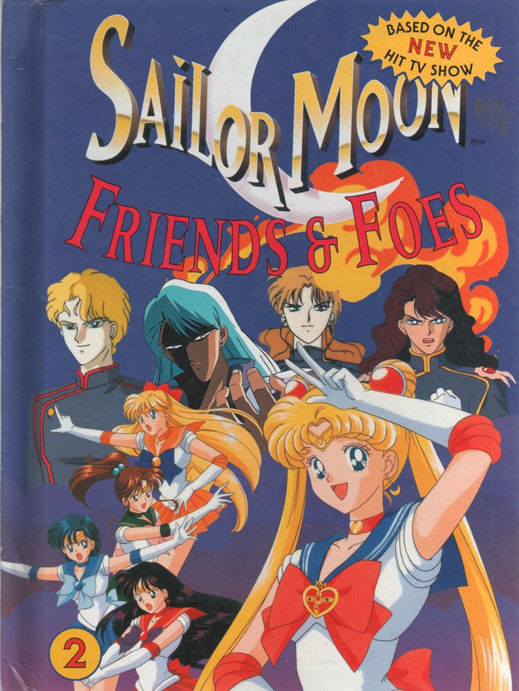 Название второй книги «Friends and Foes» (Друзья и враги) обнадеживает: кажется, что книга будет хотя бы наполовину посвящена Темному королевству. Не зря же на обложку вместе с воительницами поместили и Ситэнно. Но, увы, раскрываем книгу и смотрим: один разворот отведен на огромное изображение всех Сейлоров и Таксидо Камэна, еще разворот – на обзор атак воительниц из первого сезона, еще разворот – на анкеты девочек, далее столько же на изображение атакующих Сейлор Мун, Марс и Меркурий, и на маленький рассказ о Серебряном Миллениуме (этому посвящен разворот, но рассказ получился небольшим, т.к. опять же, все пространство заняли картинки). В итоге получается, что из 16 страниц на представителей Темного королевства ушло лишь 4. По развороту на Ситэнно с Королевой Берилл и на 7 великих ём. Про Королеву Метарию ничего не говорится.
