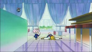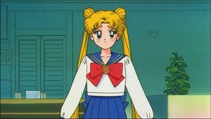Показана очень мало. В фильм вошла только одна сцена, где Минако уходит из здания. Более детально школа Минако показана в третьем сезоне аниме 90-х.
