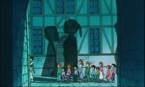 Очевидно, это улицы токийского района Дзюбан. В полнометражке были полны детей, которых погружали на магические корабли.