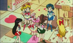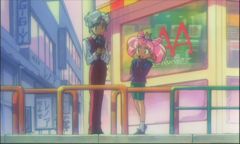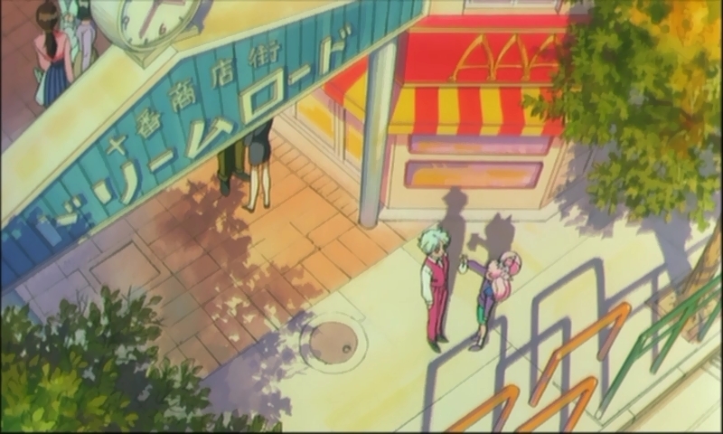 В самом начале фильма мы видим девочек, прогуливающихся по разным магазинам: оккультному, книжному, магазину одежды, игровому центру и ятай (ларек с вкуснятиной). Здесь же Усаги встретила Харуку, Мичиру и Сэцуну. Возможно, дело происходило в районе Харадзюка.
