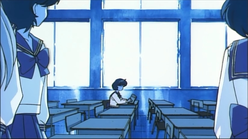 Показана глазами Ами и Макото. Перед нами классная комната и двор школы.