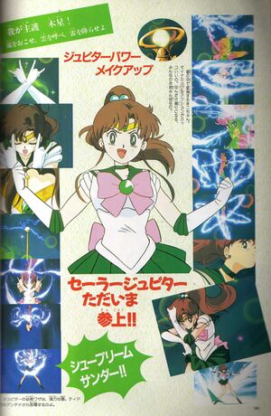 И хотя эти Воительницы еще не появились в аниме, но на Сейлор Юпитер и Сейлор Венеру тоже отведены страницы, подобные Марс, Меркурий и Сейлор Мун. Они находятся в конце цветной части альбома. Страницы Юпитер занимают место с 84 по 86. Там снова рассказывается о ней, её перевоплощении и атаке. А вот на Венеру оставили только одну страничку. И то, там большой упор делается на Сейлор Ви. Даже показана игра, ей посвященная, в которую так любила играть Усаги, а также игрушки из автоматов в виде Сейлоров.