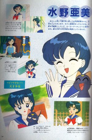 Как только номер серии подходит к появлению новой Воительницы, в альбоме на подходе рубрика про новую героиню. Так, после описания 8 эпизода на 39 странице появляется рубрика Мизуно Ами. Первая её страница показывает нам с разных сторон Ами, так же как это было с Усаги. Следующая страница содержит скриншоты перевоплощения этой Воительницы, и, наконец, третья страница рубрики содержит скрины атаки «Сябон супурэ:» и речь, произносимую обычно Меркурий перед появлением.