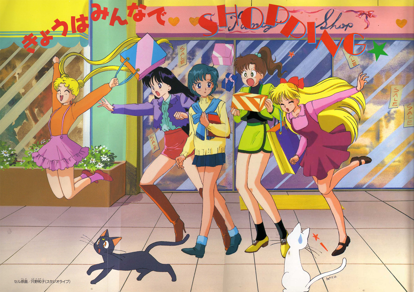 Книга читается традиционно: справа налево. Обложка самой книги содержит те же картинки, что и съемная, но только они являются не цветными, а фиолетово-белыми. Открыв книгу, мы видим в ней сложенный втрое постер. На нем изображены Усаги, Рэй, Ами, Макото и Минако, занимающиеся шопингом, а также Луна с Артемисом. В отличие от постеров остальных книг, постер первого альбома всего лишь односторонний. Первая страница носит номер 9. На ней собраны кадры из первого опенинга. Причем даже сделана сноска на то, что опенинг первых 6-ти серий отличался от остальных.