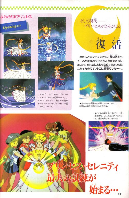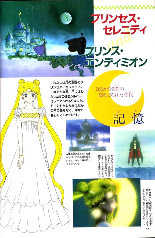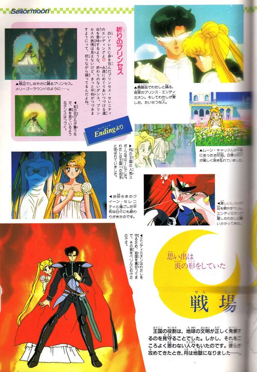 Далее снова продолжаются описания серий. После 35-ой серии, в которой мы узнаем о прошлом Принцессы Серенити, идет рубрика, которая называется «Принцесса Серенити и Принц Эндимион». Здесь содержатся такие разделы, как «Воспоминания», «Сражение» (имеется в виду нападение Темного Королевства на Луну) и «Возрожение».