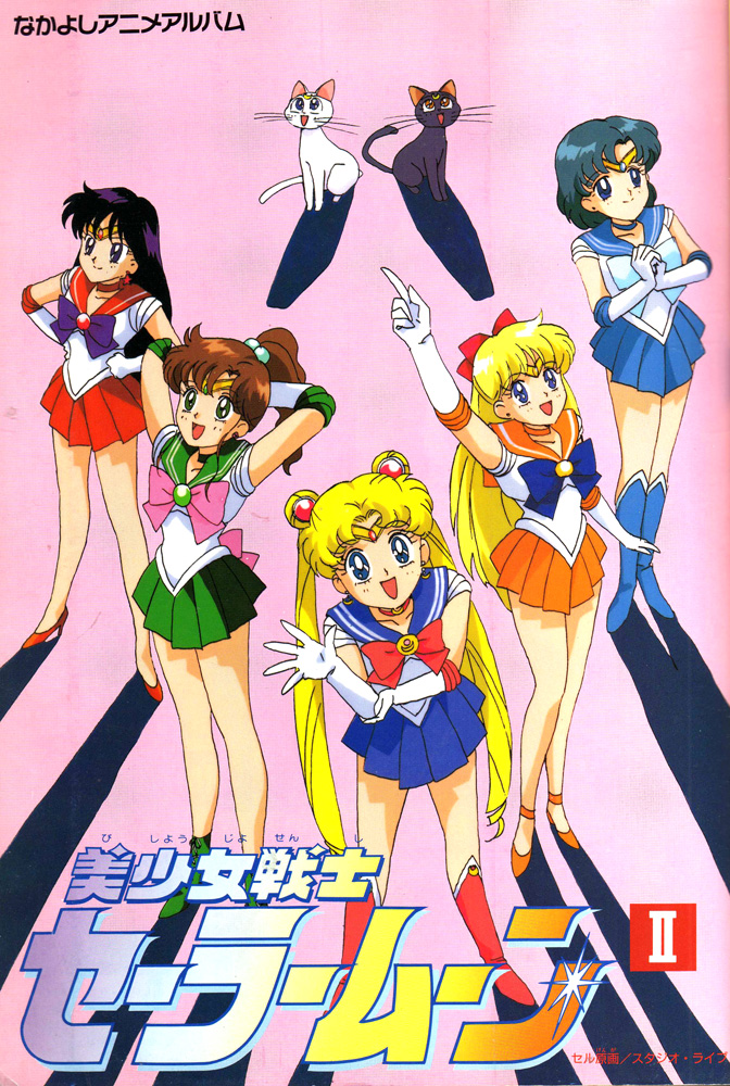 Открыв книгу, мы первым делом видим постер. На этот раз он уже двусторонний. На первой стороне изображены Берилл и 4 Небесных Короля, пять Сейлор Воительниц, Нару и Таксидо Камэн. На обратной стороне – преимущественно Сейлор Мун и Таксидо Камэн с небольшими изображениями остальных четырех Воительниц. Первая страница показывает нам сверху пять Воительниц и двух котов. Вверху надпись «Накаёси Анимэ Альбом», а внизу – «Бисёдзё Сенси Сэ:ра:му:н II». На следующей 10-ой странице мы можем видеть раскадровку опенинга сериала, который нам показывали с 27-ой серии.
