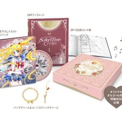 - Первое издание включало в себя браслет и подвеску в форме первой лунной палочки. Остальные тома имели в комплекте подвески в форме ручек для перевоплощения из 1 и 2 сезонов, брошек Усаги из 1 и 2 сезонов, лунного скипетра из второго сезона и Ключа Времени-Пространства Чибиусы.