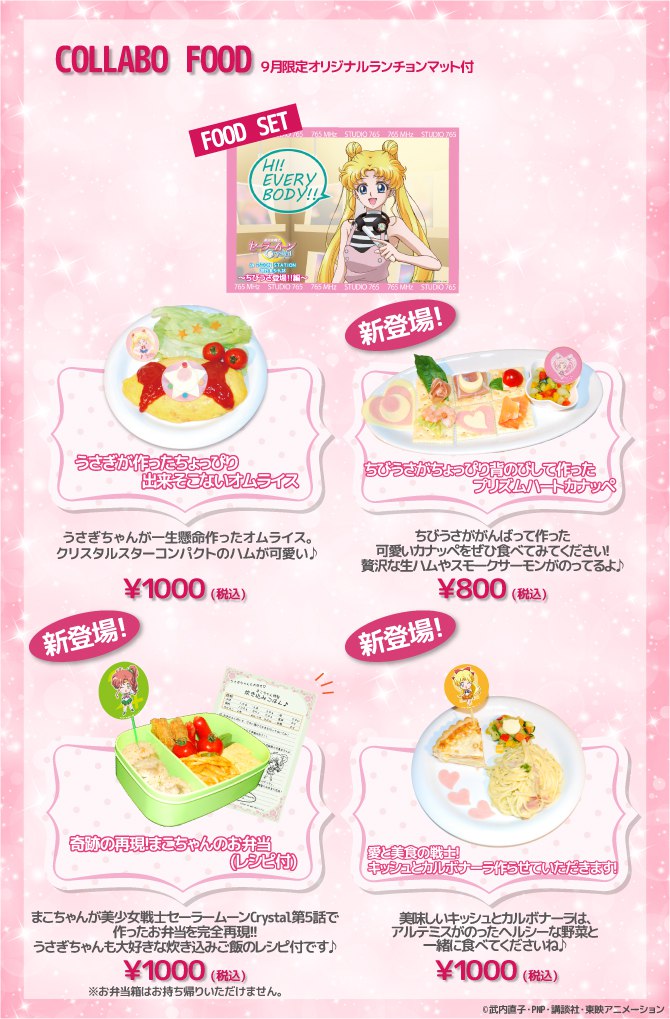 С 24 ноября по 7 декабря было открыто временное тематическое кафе по «СМК», которое работало в Nico Nico Honsha на втором этаже торгового центра P'PARCO. Основу меню составляли тематические десерты и напитки, сопровождавшееся атрибутикой нового аниме по «Сейлор Мун»; меню напитков отбиралось из идей, которые предлагали поклонники.