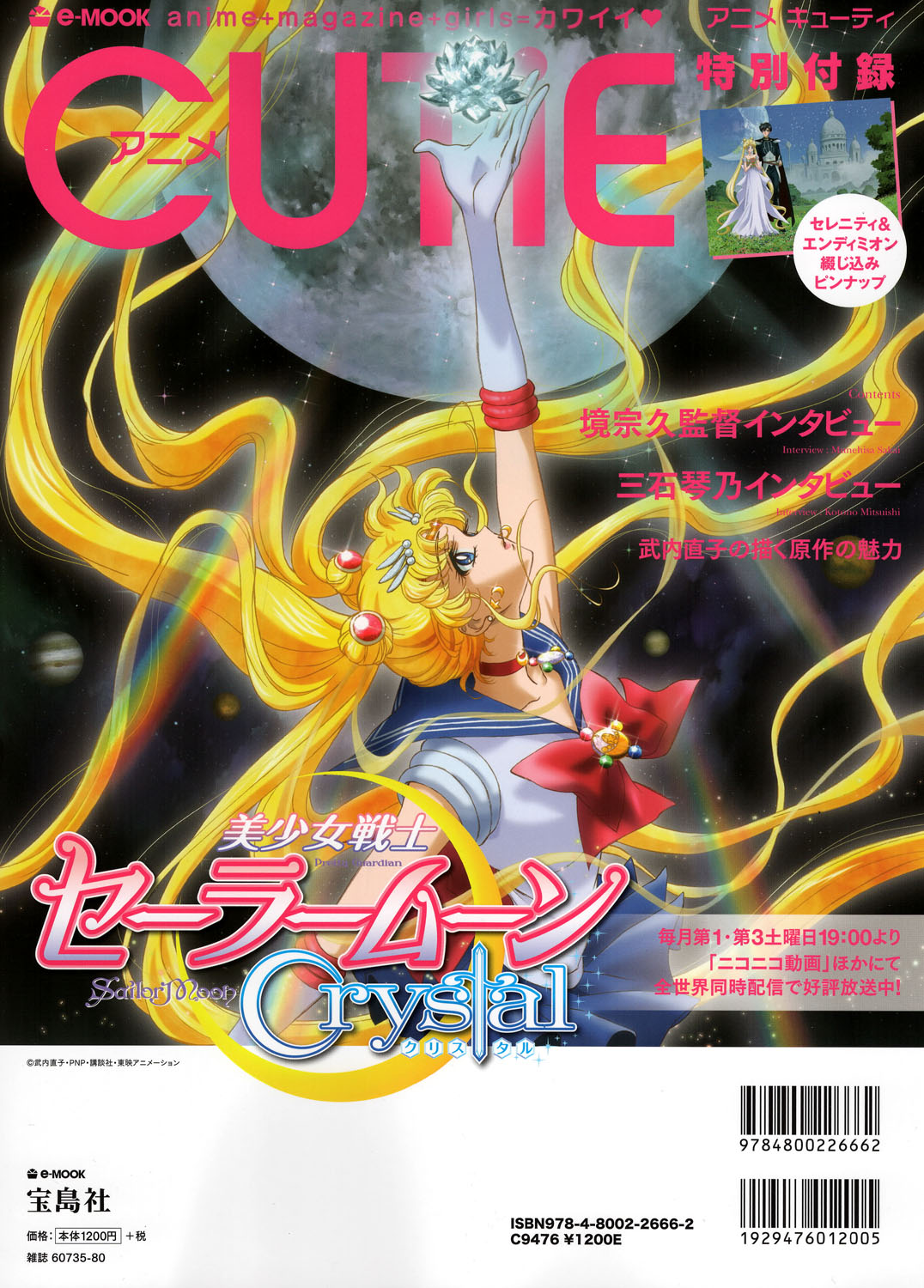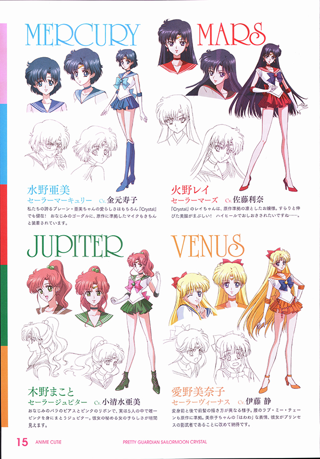 22 августа в продажу поступила книга Sailor Moon Crystal First Visual Book (Коданша), содержащая эскизы, наброски, раскадровки, концепты и арты к новому аниме. Также в августе, в продажу вышел журнал "Anime Cutie" с концептами иннеров и их кратким описанием, двумя интервью: с Сакаи Мунехиса - режиссёром СМК, и Мицуиши Котоно - сейю Усаги, с рубрикой о манге, а также со вкладным постером с изображением Серенити и Эндимиона на фоне Лунного Дворца, Земли и звёздного неба (переводы материалов из журнала можно прочесть здесь, здесь, и здесь)