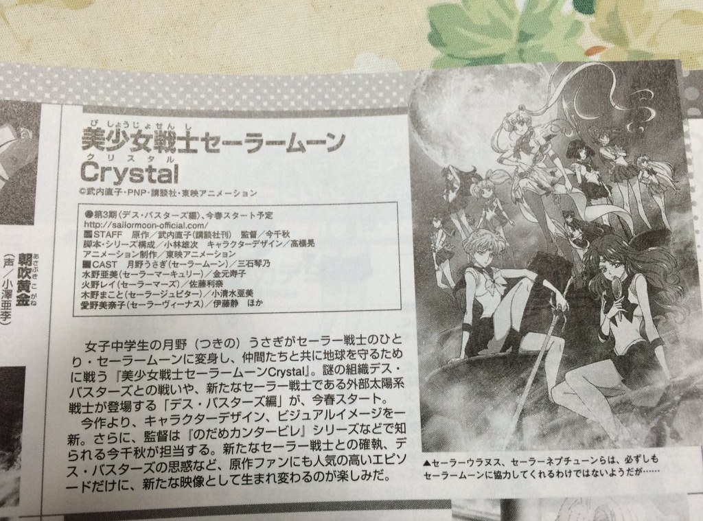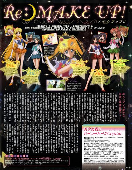 "Новое аниме "Сейлор Мун" начнётся летом 2013! В наши планы входит показать его не только в Японии, но и по всему миру. Главную тему будет исполнять группа Momoiro Clover Z"». (с) Хрустальный Токио